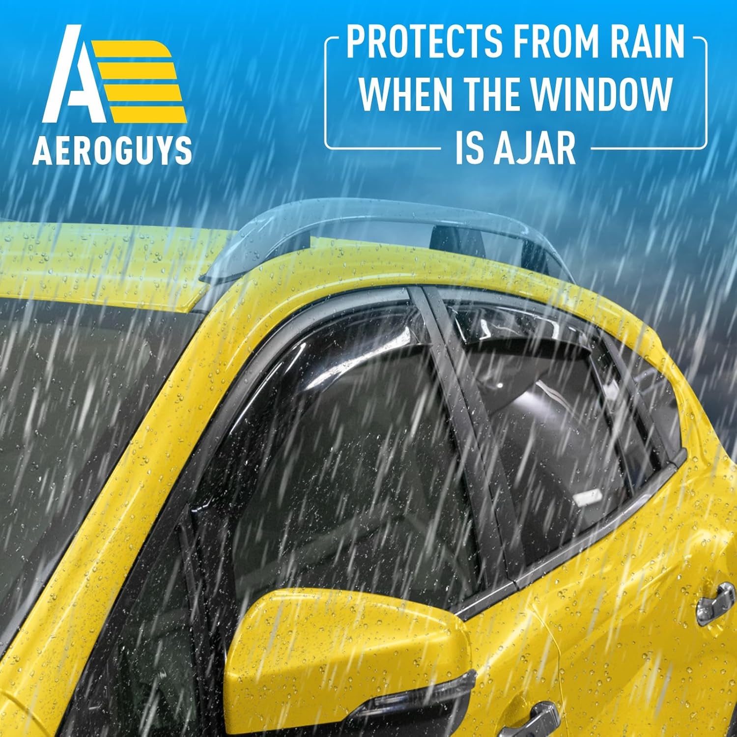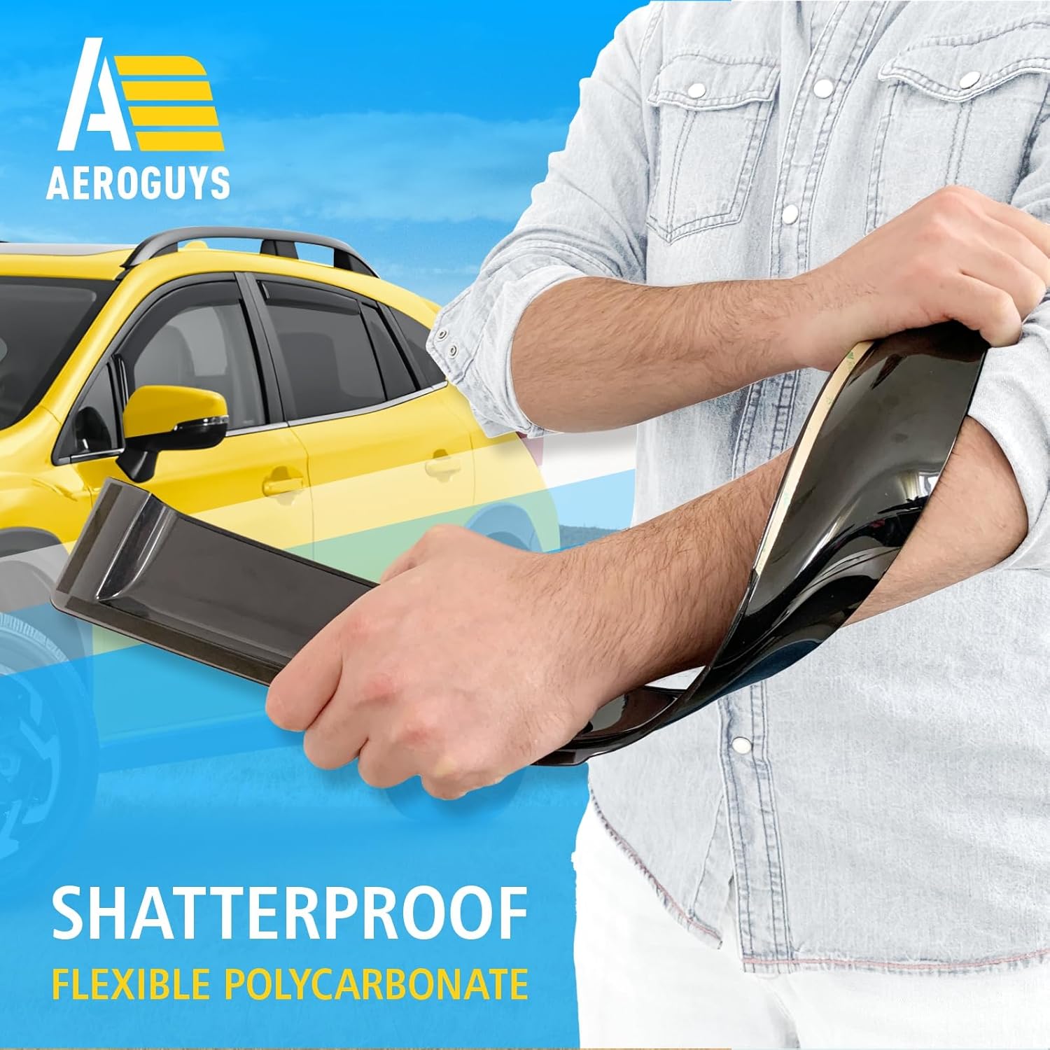 - Incredibly Durable AEROGUYS Auto Window Deflectors – They are made with strong and tough polycarbonate which is clear and scratch-resistant. They also provide UV protection making your ride more comfortable under all weather conditions.