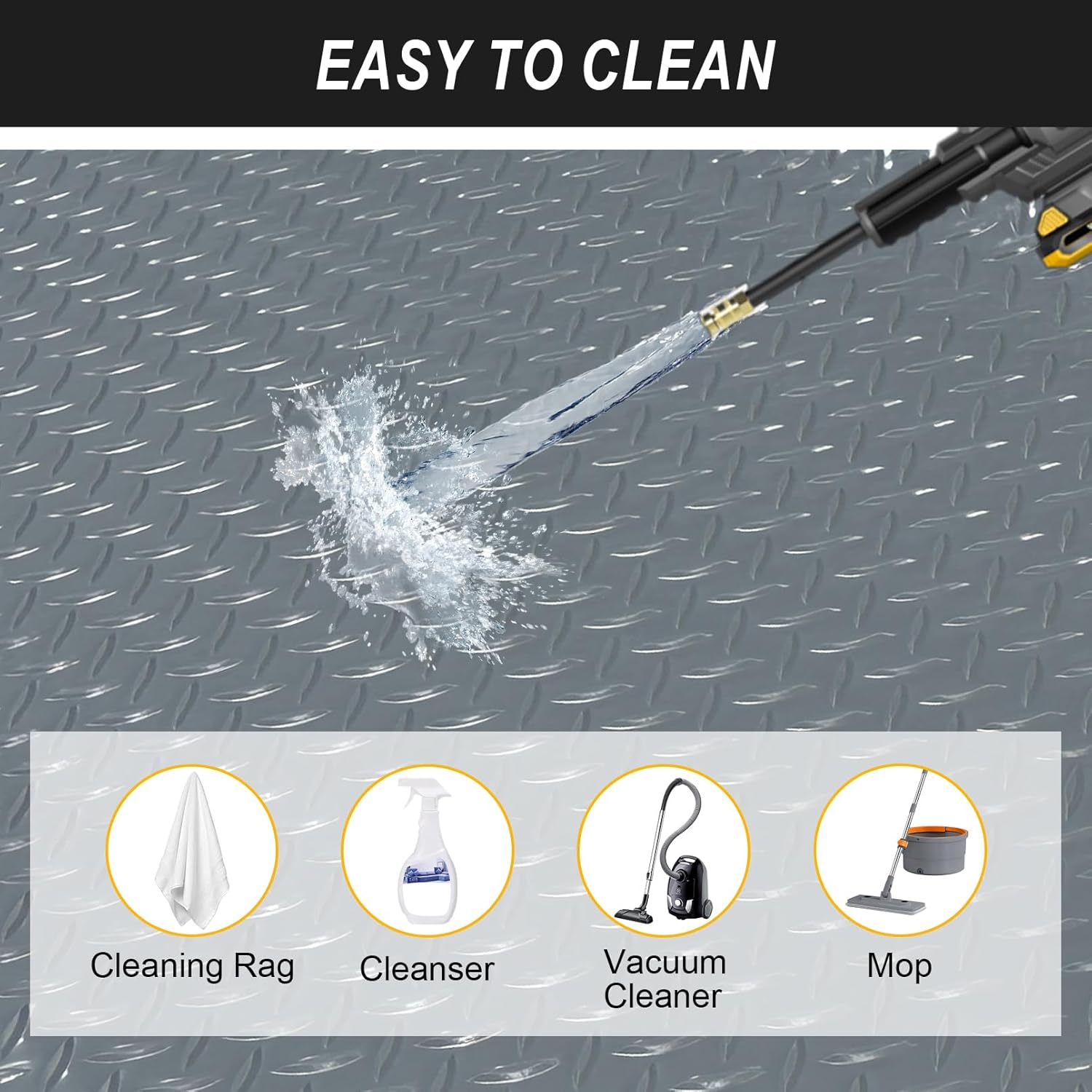 - Waterproof & Effortless Cleaning: Stain-resistant PVC repels oil, grease, and mud. Simply wipe with a cloth, hose down, or vacuum for a like-new finish—no harsh chemicals needed.