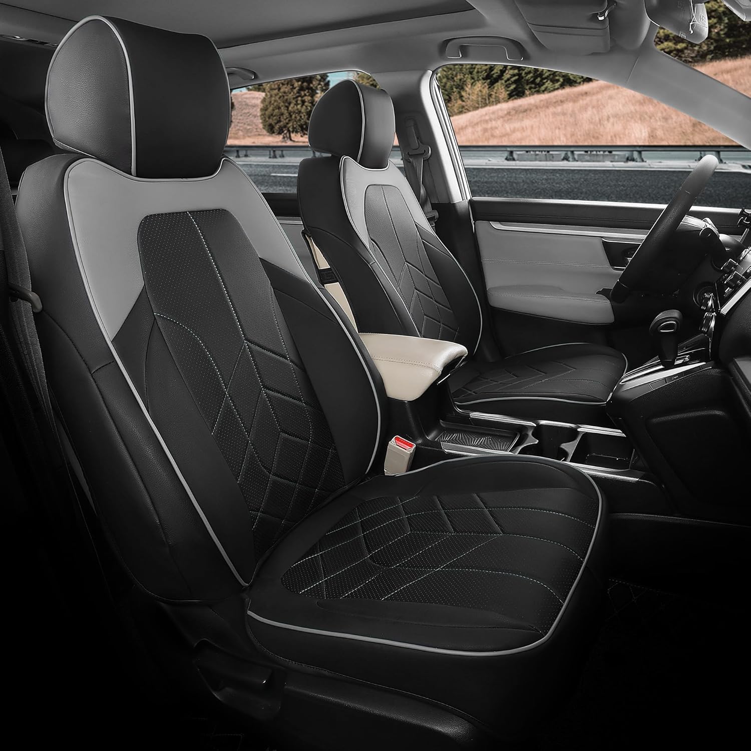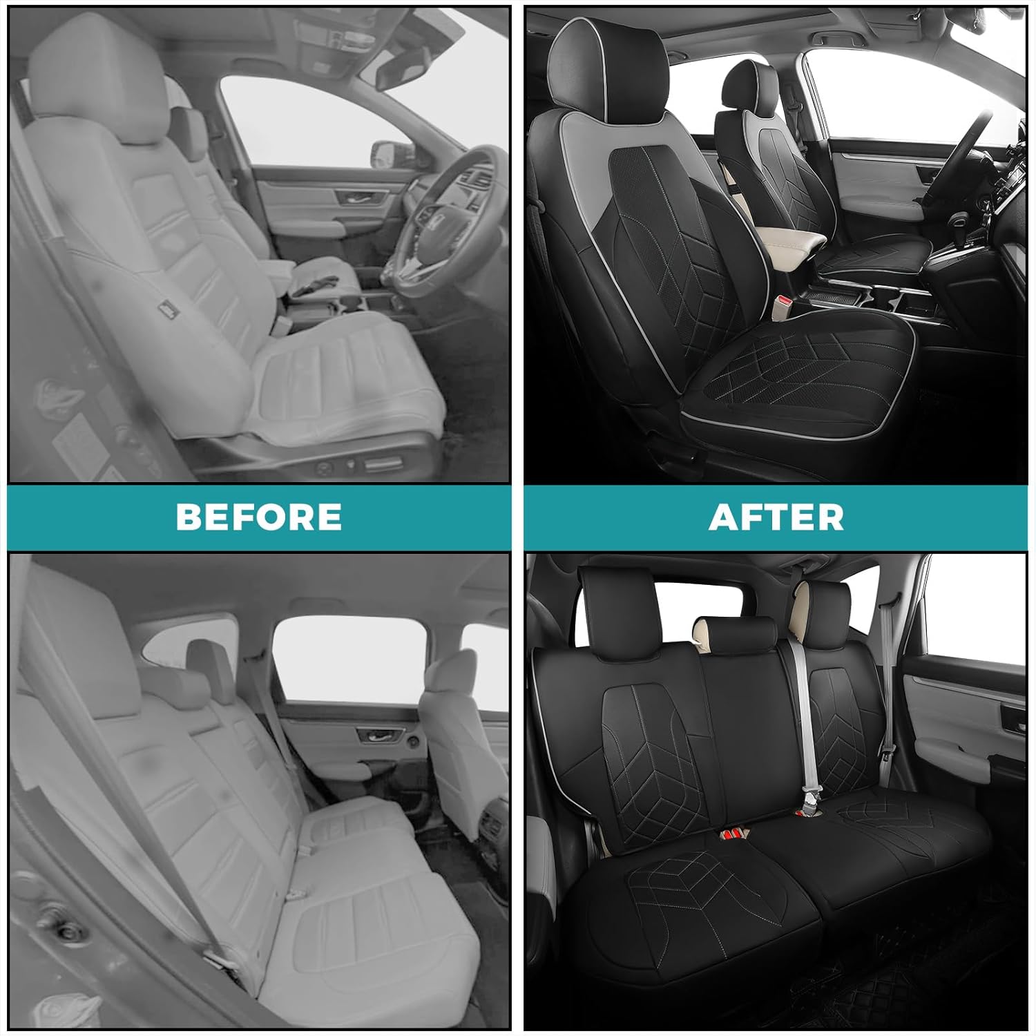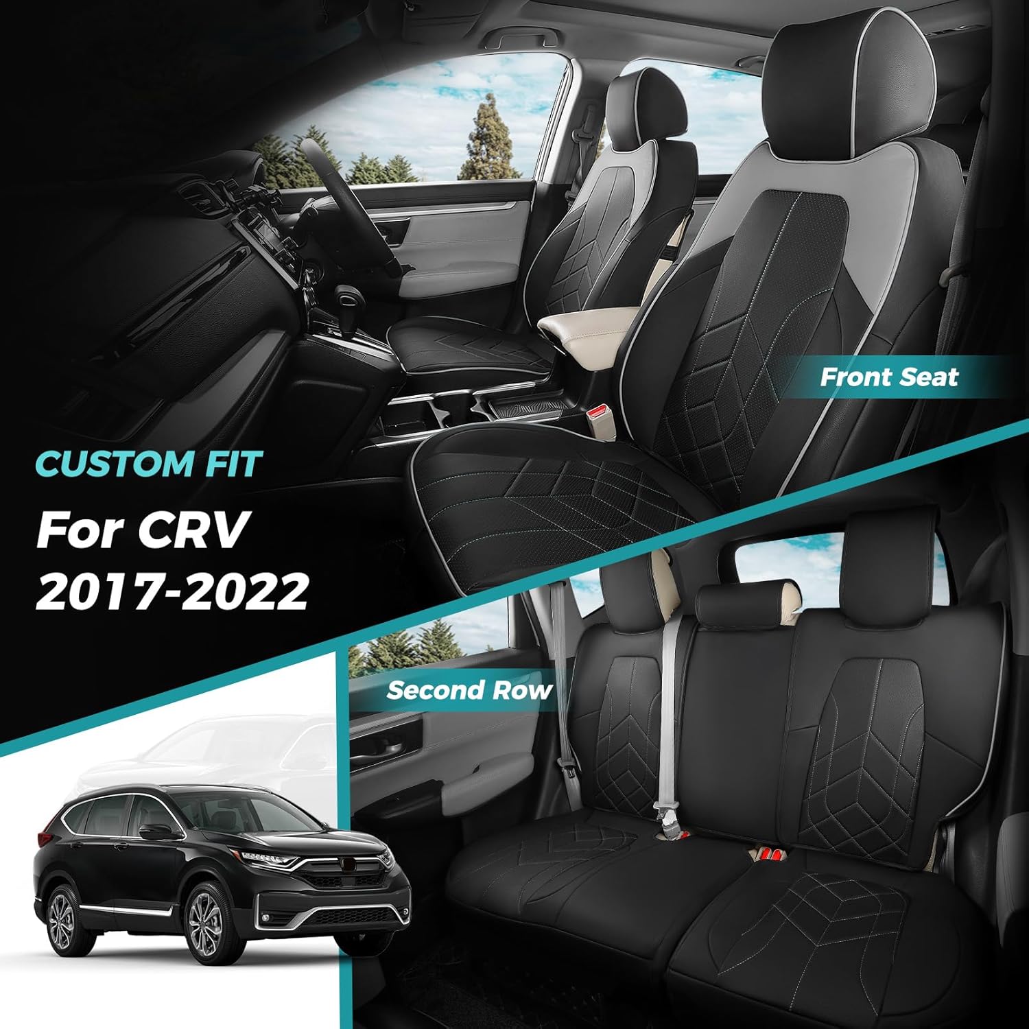 for Honda CRV Seat Covers Custom Fit 2017-2022 EXL EX LX Sport,Touring,Hybrid - Luxury Waterproof Leather Car Seat Covers Full Set - BlackGrey