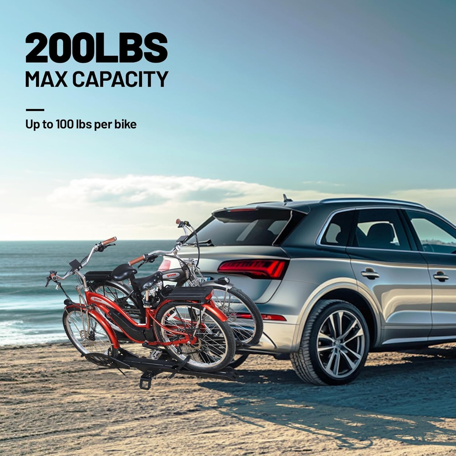 200 lbs E-Bike Rack Hitch Mount Platform Style for Cars Trucks SUVs Vans RVs, Easy Fold with One Hand, fits Bikes with Up to 5-inch Fat Tire