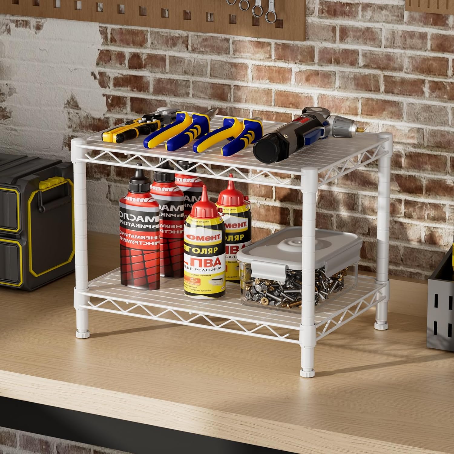 SINGAYE 2 Small Wire Shelves Garage Pantry Close Home Organizers and Storage Bathroom Shelf Laundry Room Organization Adjustable Book Metal Shelving Unit