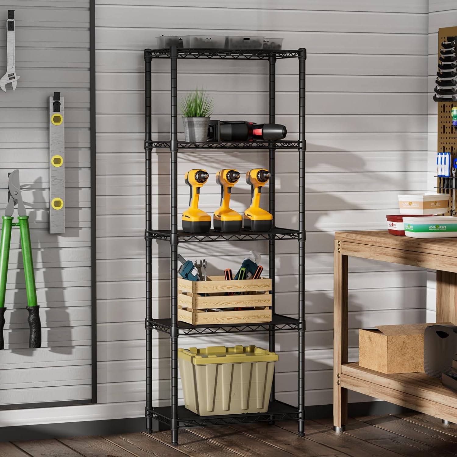 - Convenient Home Storage: Metal wire shelves with adjustable spacing make perfect for narrow spaces or room corners such as kitchens, bathrooms, laundry rooms, balconies, garages, entries, or offices.