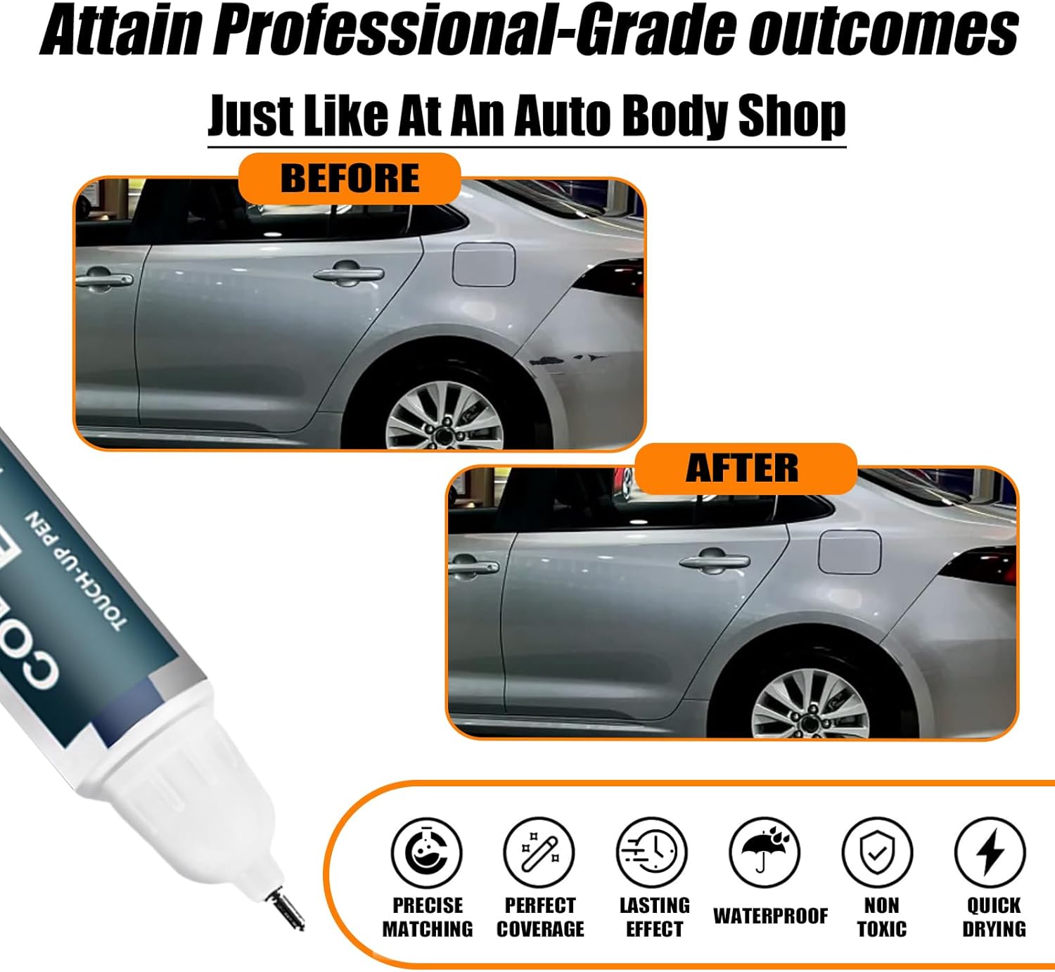- 【Excellent Color Match】The car touch-up paint is specially designed for the Toyota vehicles and can be well-matched with the Toyota. It is meticulously crafted to minimize color differences and make scratches invisible, Our touch up paint compatible with Toyota features an exact color match for any Toyota model, ensuring a seamless and professional finish. No more worrying about mismatched shades