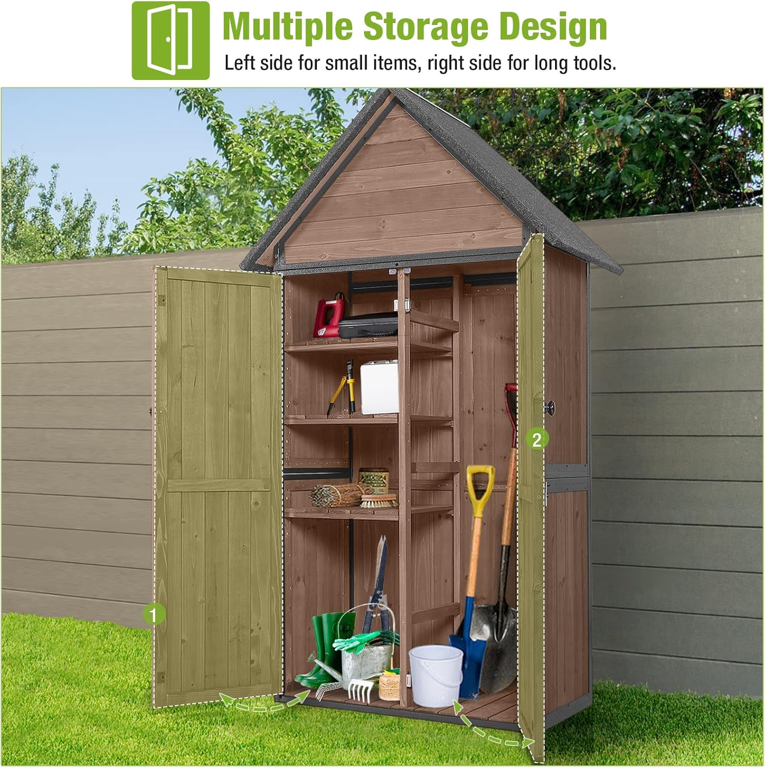 - Perfect Size: Overal size is 16.5"D x 36.8"W x 67.1"H. Hide the messy garden tools and do not take up too much space. You can place the outdoor storage shed in the garden, patio, deck, porch, garage, etc.