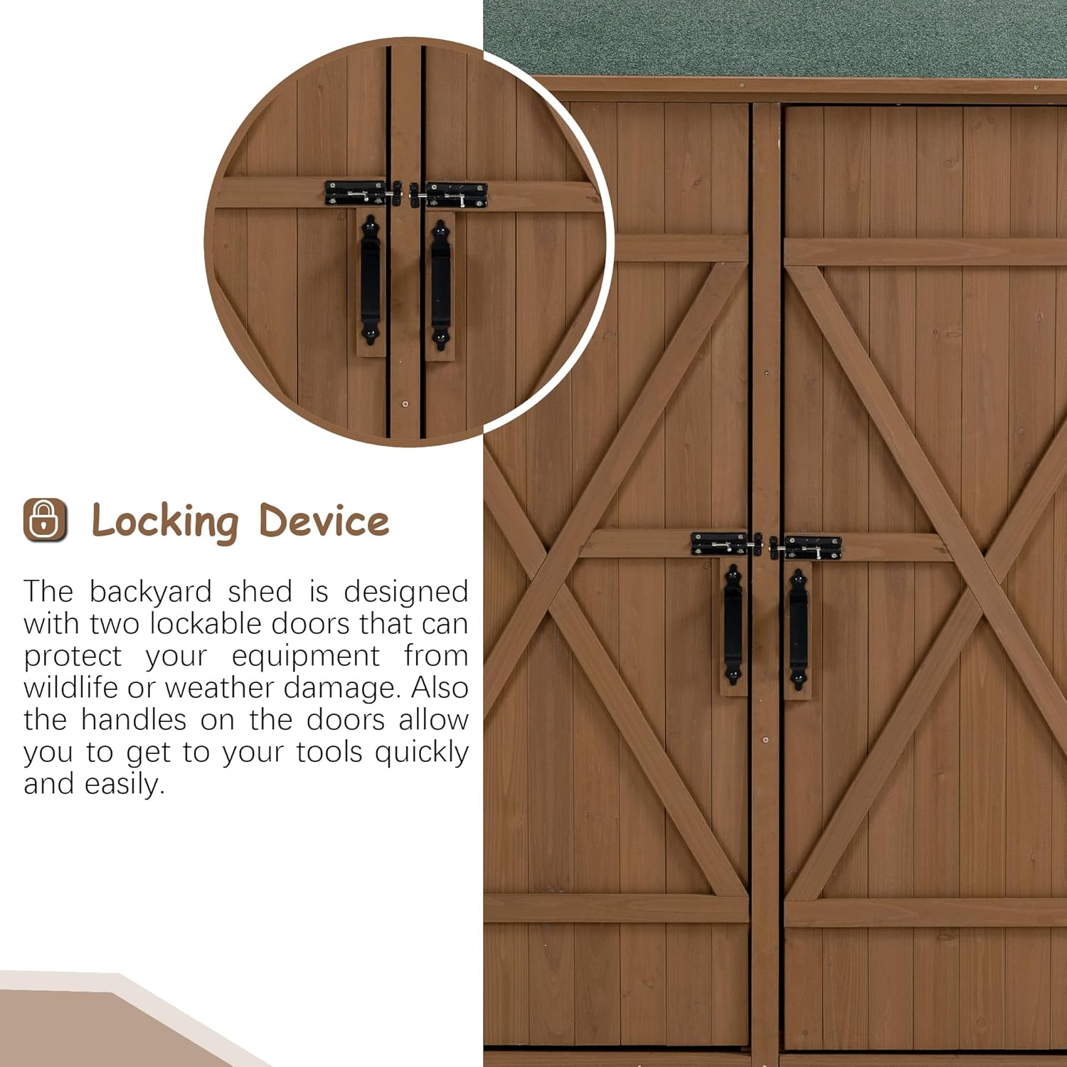 - MULTIFUNCTIONAL USE - Perfect for storing garden tools, pool supplies, and lawn maintenance equipment. This fir wood storage cabinet seamlessly blends into various outdoor settings.