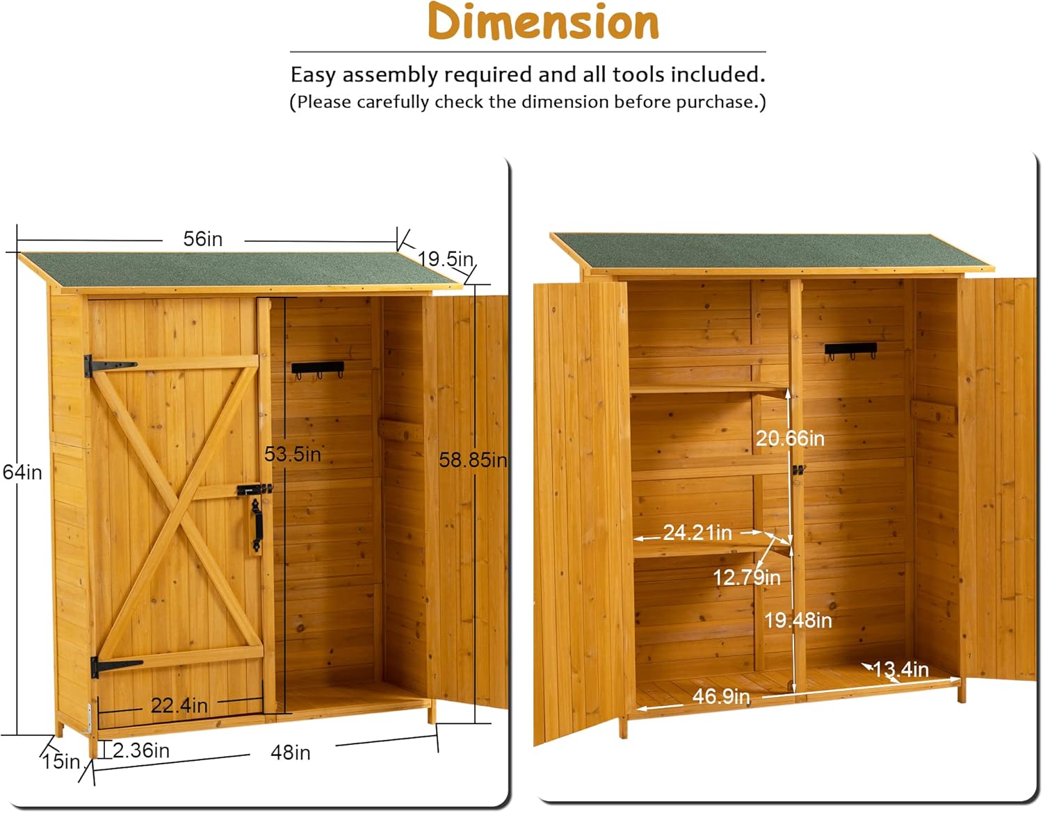 - MULTIFUNCTIONAL USE - Perfect for storing garden tools, pool supplies, and lawn maintenance equipment. This fir wood storage cabinet seamlessly blends into various outdoor settings.
