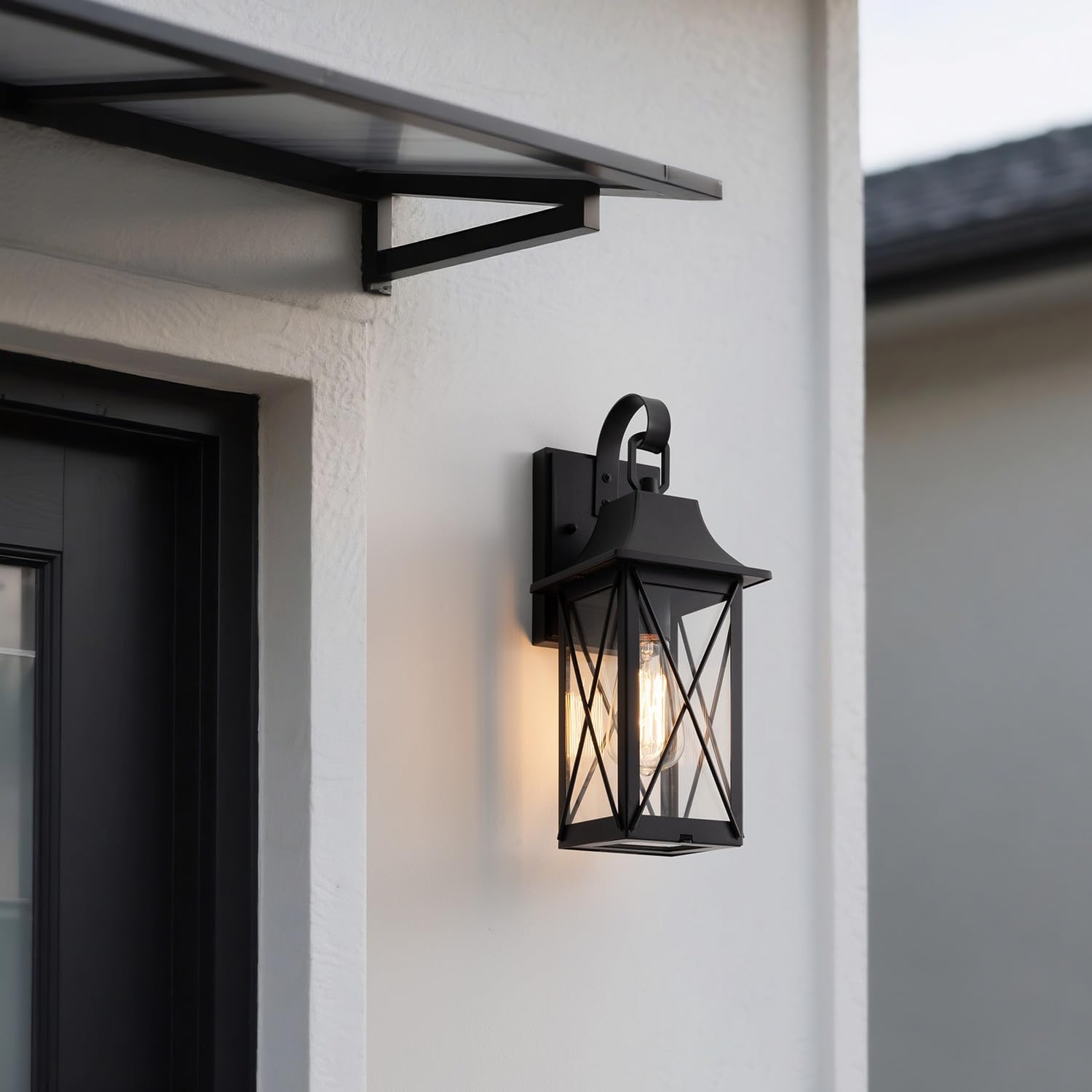 mirrea 15-inch Outdoor Porch Wall Light for House, Waterproof Exterior Sconce for Patio, Wall Mount Lighting Fixture for Front Door, Permanent Outside Lamp for Garage, Matte Black, Set of 2