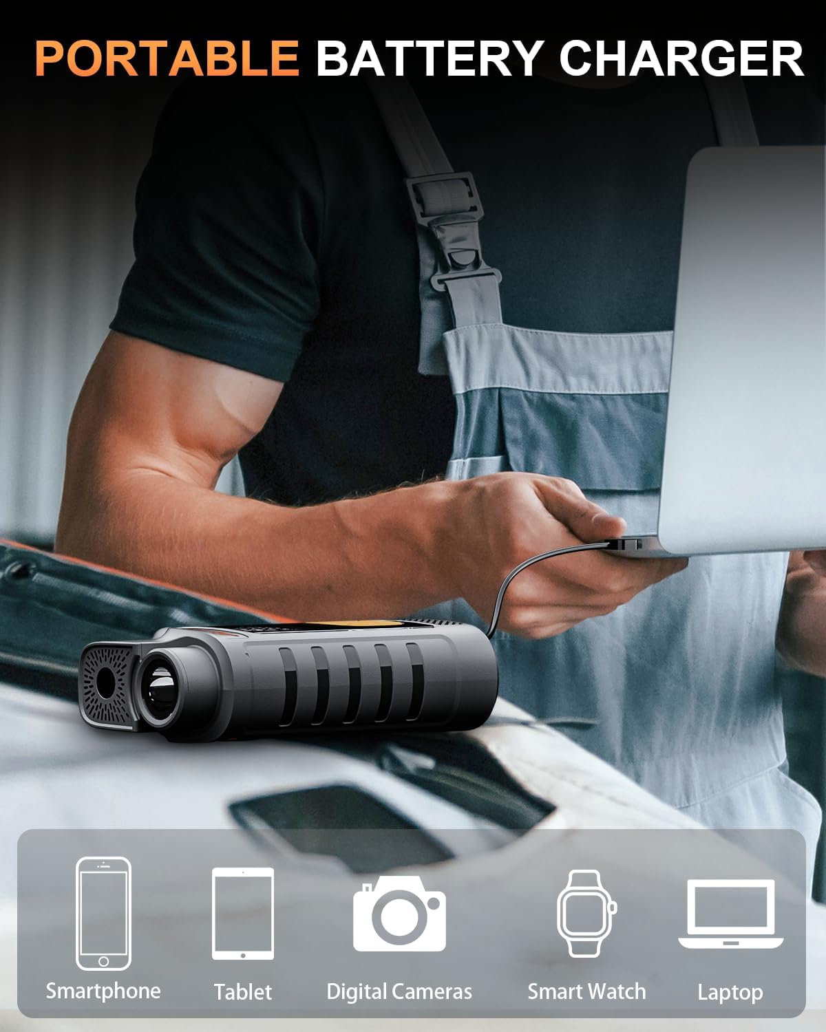 - Portable Power Bank--The jump starter kit power supply supports USB-C fast charging (2-hour full charge) and a high-capacity 22.2Wh battery. Equipped with a USB cable for charging more electronic devices, it's perfect for everyday travel, long trips, or emergency charging. Say goodbye to low battery worries.