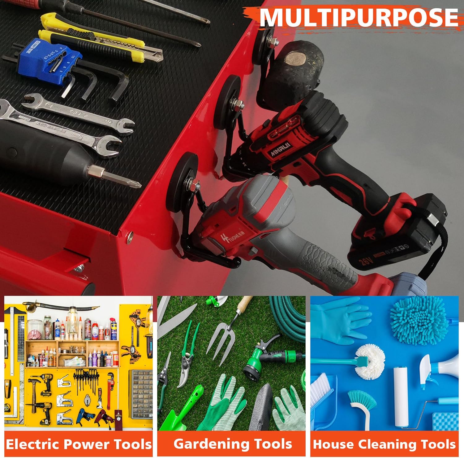 - [Multiuse Neodyium Magnet Hook]: strong storage hook can easily support the weight and can hang most items. Applicable to scenes such as kitchens, offices, etc. Can storage various tools, such as hoses, gym bags, shovel, broom, mop and other tools