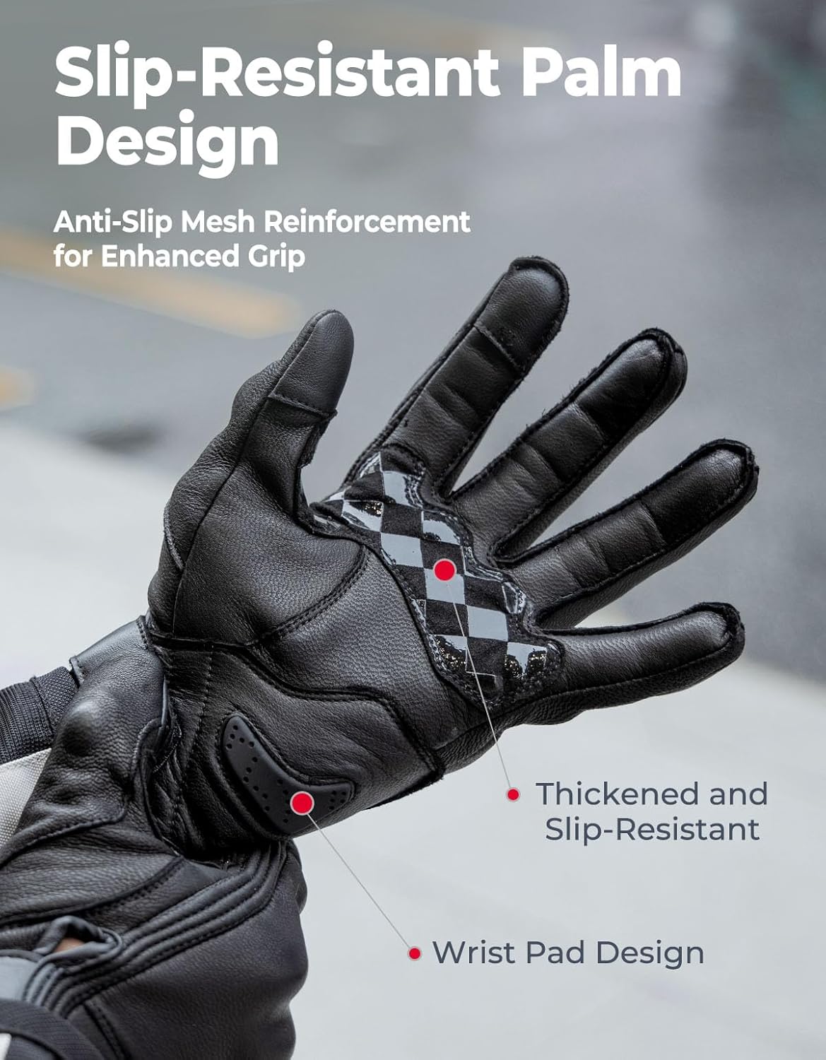- Grip Like a Pro, Control with Ease: The non-slip palm delivers a secure hold, ensuring smooth handling of the throttle and speed without slipping. Flexible side pleats fit your hands’ natural movements, keeping them agile and comfortable—total control with zero strain