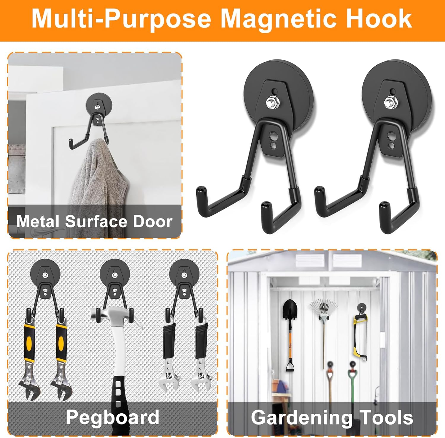 ENUODA Strong Magnetic Hooks Heavy Duty - Neodymium Magnetic Tool Holder Magnet Utility Hooks for Hanging Broom, Power Tool, Toolbox, Shovel, Mop, Toolchest, Container, Van, Cabinet, Pegboard, 4 Pack