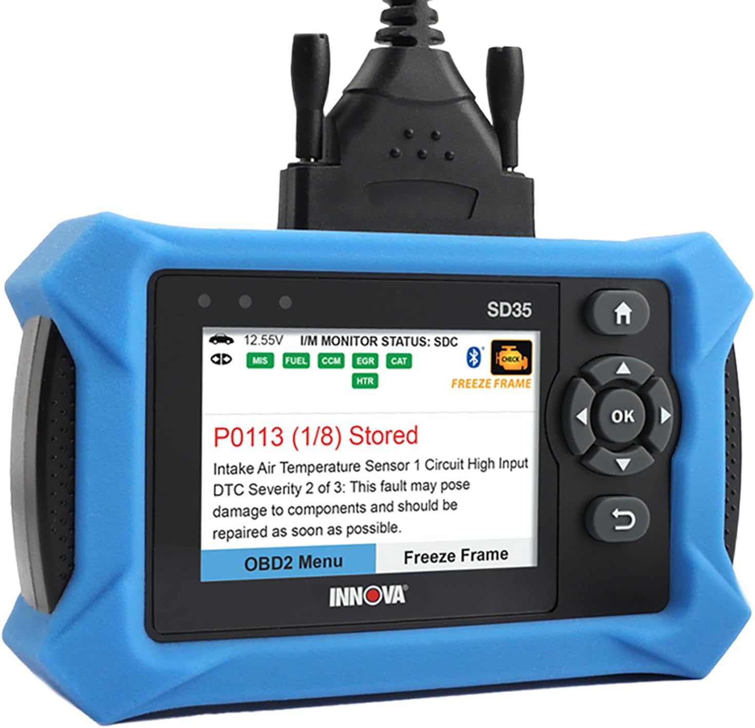 - OBD2 SCANNER FOR ALL SYSTEMS – The INNOVA SD35 is a tablet-based OBD2 scanner designed for advanced diagnostics. Read and clear check engine light, ABS, SRS, and TPMS codes, plus test your car battery and alternator to prevent unexpected failures.