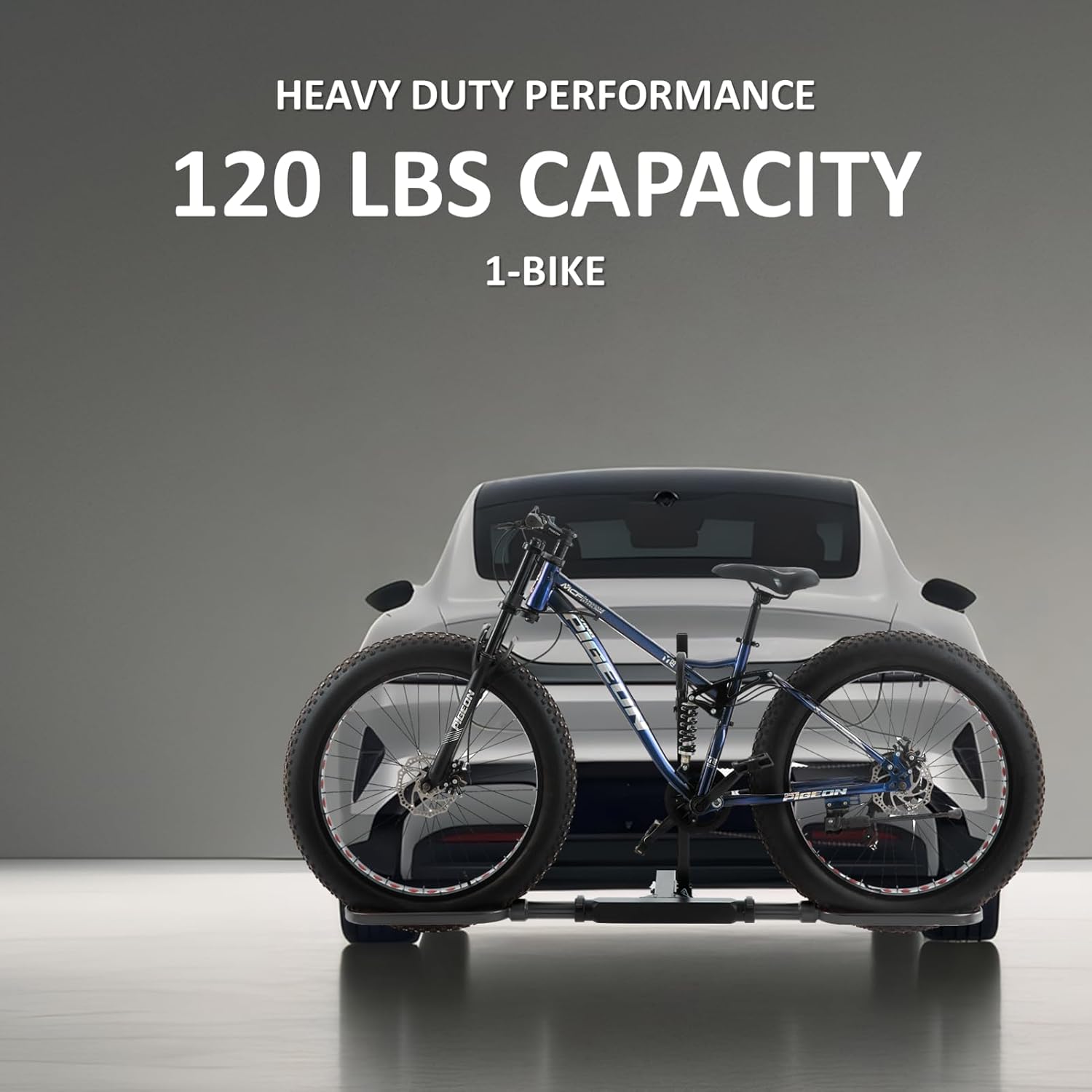 Trailer Hitch Bike Rack for Car 1 Bike, E Bike Carrier Hitch Mount, Fat-Tire Ebike Rack for Tow Hitch, Fits 2" Inch Receiver for SUV Truck Van (1 Bike - 120 Lbs Cap - Black)
