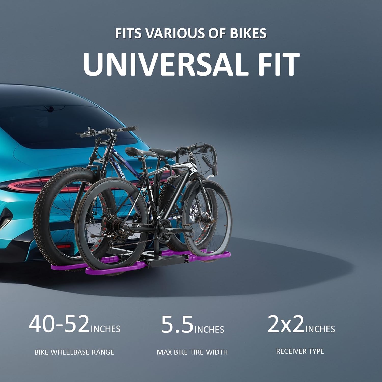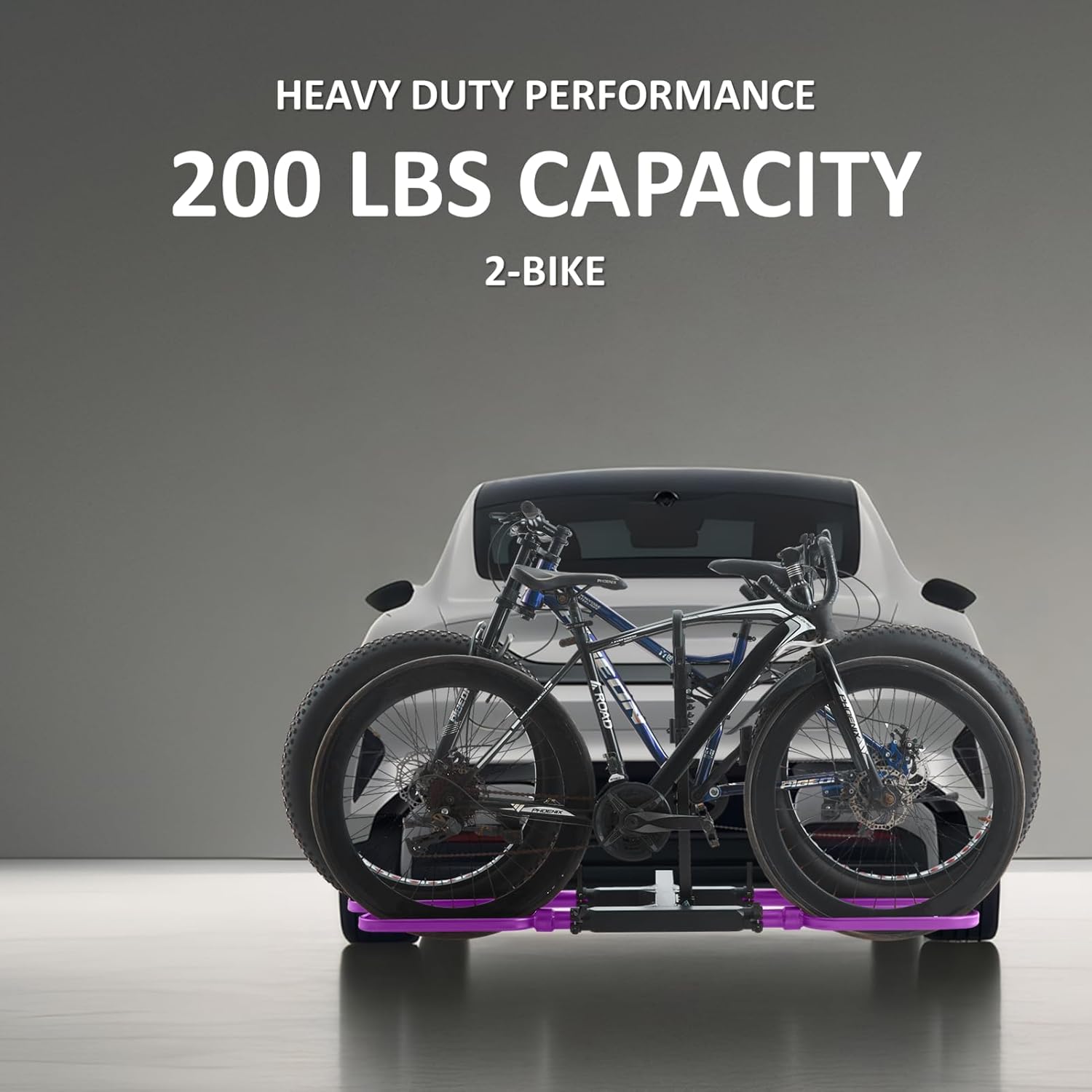 Ebike Rack for Tow Hitch, Ebike Carrier Hitch Mount 2 Bike, Electric Bike Rack for Car Hitch with 2-Inch Receiver (2 Bike - 200 Lbs Cap - Purple)