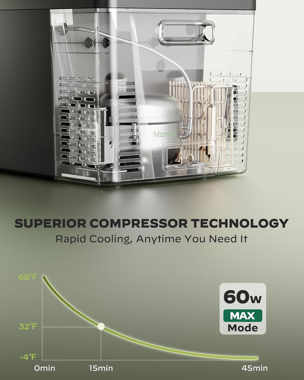 - Advanced Cooling with Compressor Technology: The car refrigerator uses efficient compressor technology to cool food and drinks quickly. Choose between MAX Mode (60W) for rapid cooling (from 78°F to 32°F in 15 minutes) or MIN Mode (45W) for energy-efficient cooling. Ideal for road trips, camping, and outdoor adventures, it keeps your items fresh or frozen on the go.