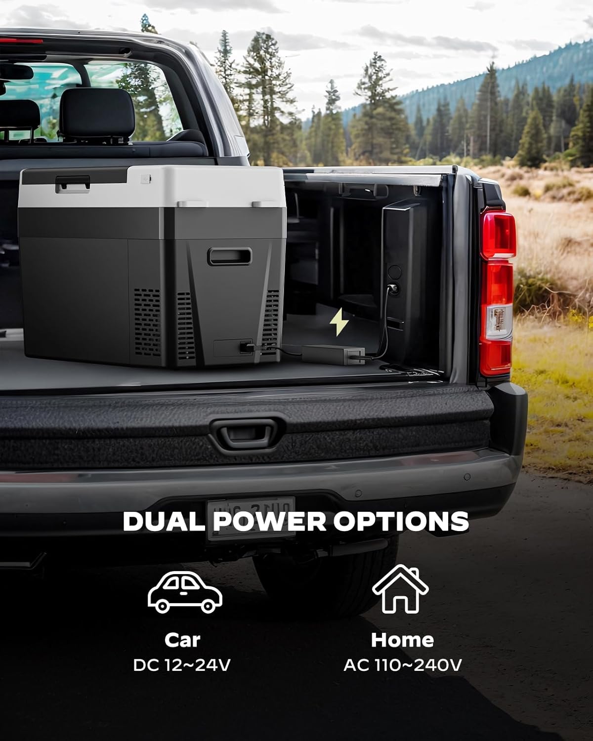 - Dual Power Options – Car & Home:With dual power options, this electric cooler comes with both 110/240V AC and 12/24V DC adapters, making it easy to use at home or on the road. Whether you're in your car on a trip or at home, the car fridge ensures your food stays cool with ease and convenience.