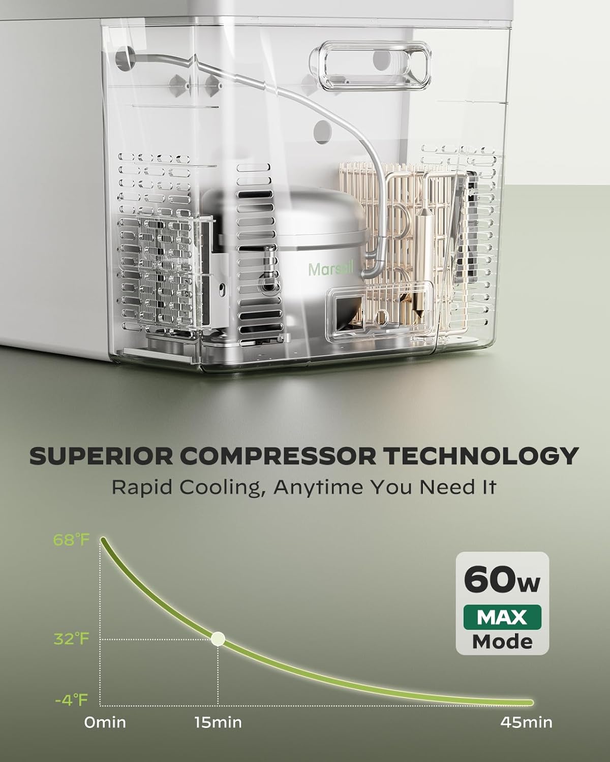 - Advanced Cooling with Compressor Technology: The car refrigerator uses efficient compressor technology to cool food and drinks quickly. Choose between MAX Mode (60W) for rapid cooling (from 78°F to 32°F in 15 minutes) or MIN Mode (45W) for energy-efficient cooling. Ideal for road trips, camping, and outdoor adventures, it keeps your items fresh or frozen on the go.
