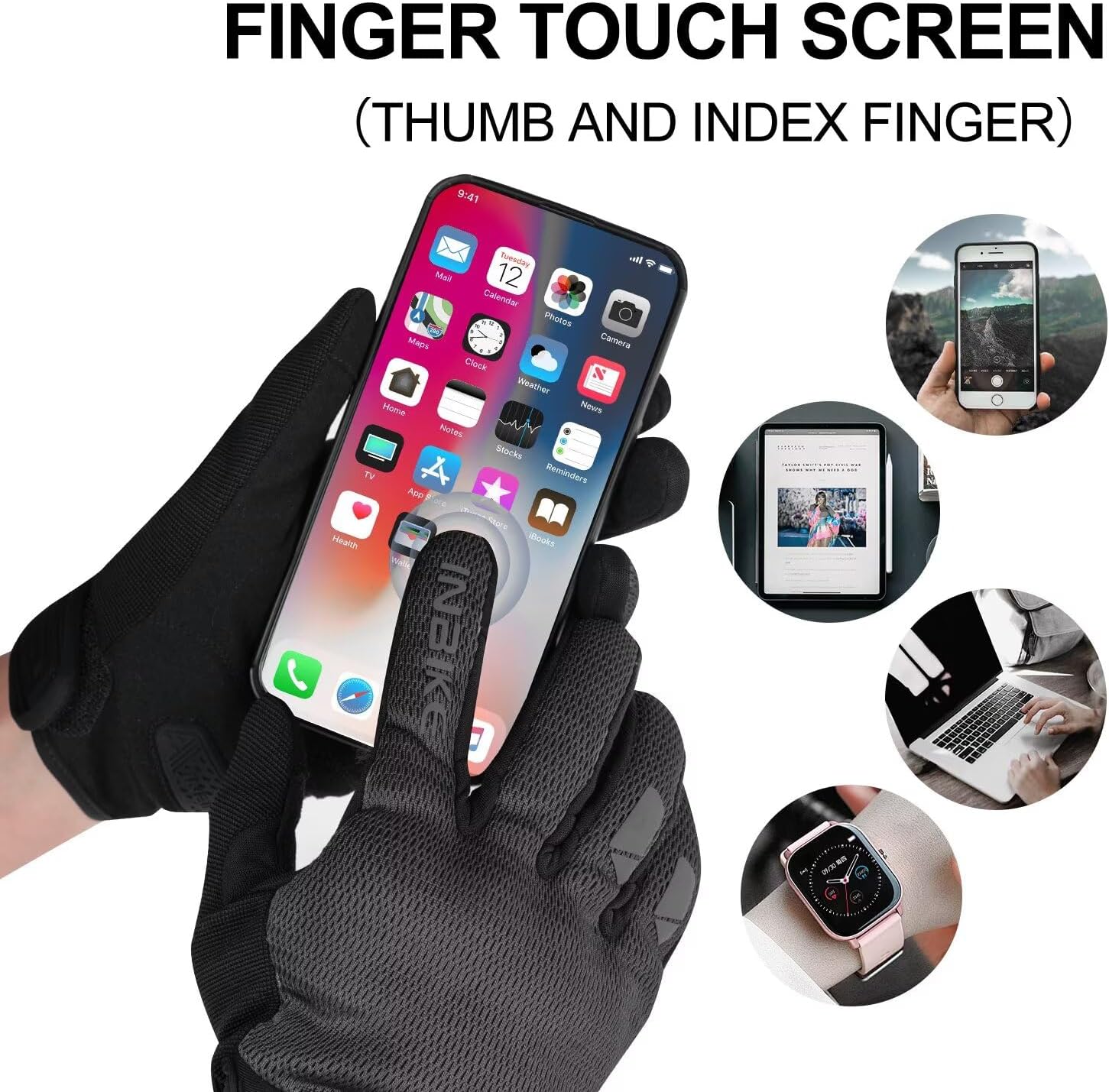 - ✔[Touchscreen]: This riding gloves use touchscreen material on both the thumb and index finger tips, allowing you to use a touchscreen device without removing your gloves.