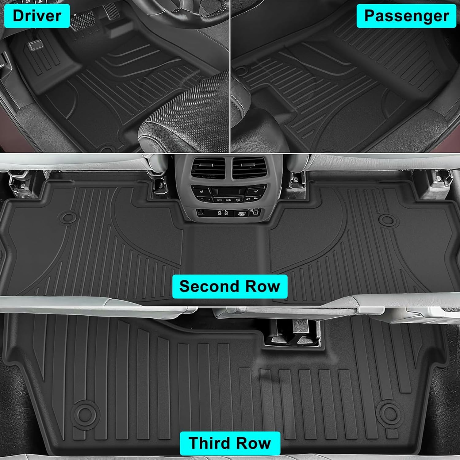 - 【Easy to Install and Clean】 The simple installation and removal design makes it easy for users to replace the custom floor mats at any time. Regardless of grime, spills or debris, simply wipe or remove them for flushing to easily maintain a tidy three-row and trunk space.