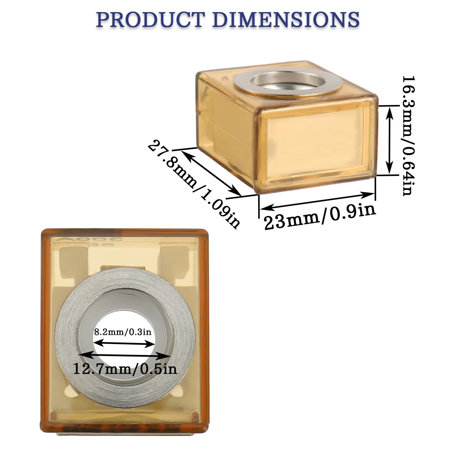 - 【Reference data】:Fuses have a Max Voltage Rating: 58V –– Fuse Holder have an Amperage Rating:175A – Fuses Holder Stud Size: M8 (5/16") –– Fuse Holder Mounting Hole: M10 (3/8")