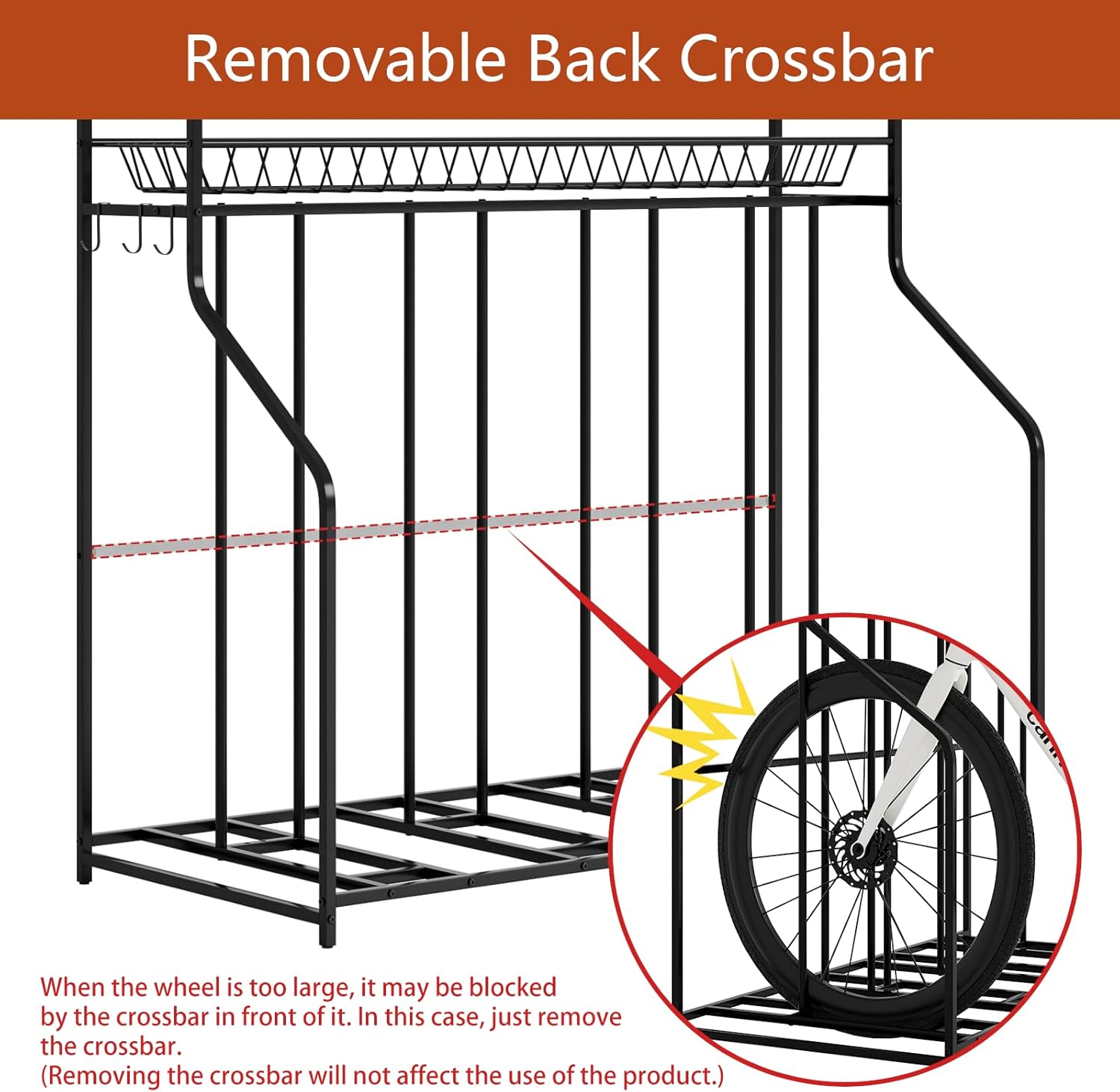 - 【Multi-purpose Garage Organizer】Safely accommodates up to 4 bikes of different shapes and sizes. Abundant storage space, not only a bike stand but also an ideal indoor sports gear storage station for garage, home and outdoor use.