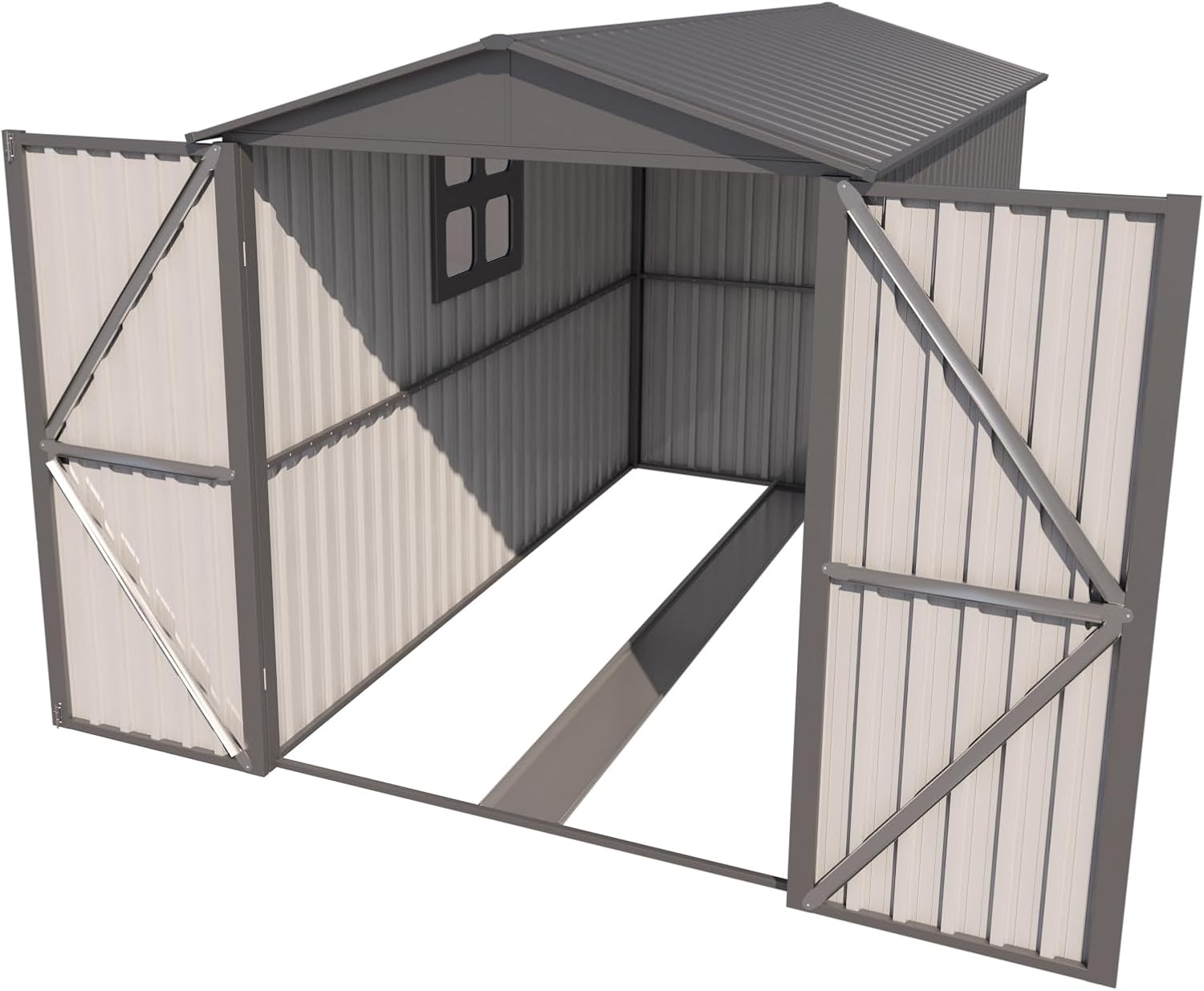 - Efficient Motorcycle Storage Solution: This outdoor steel storage shed is equipped with tracks, providing a secure and convenient space for safely storing most motorcycles, protecting them from the elements