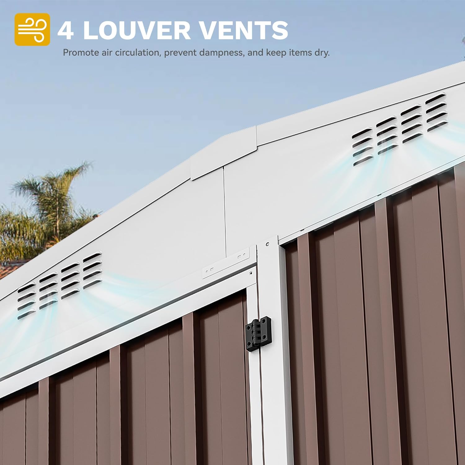 DWVO Outdoor Storage Shed 8x4FT with Rack, Metal Garden Shed with Storage Shelves, Bike Storage Tool Cabinet Box for Lawn Backyard Patio Use, Brown
