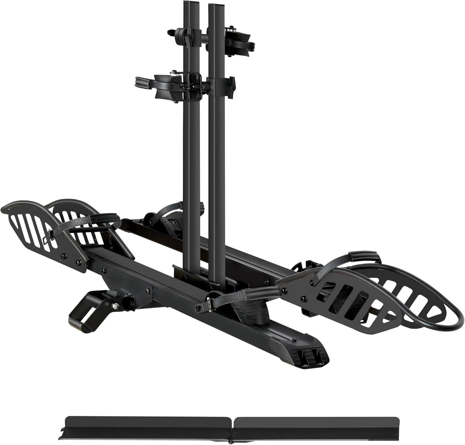 E-Bike Rack with Ramp, Hitch 2 Bike Rack, 200 lbs Capacity Electric Bike Carrier, Foldable Platform Mount for Cars, Trucks, SUVs, Minivans, Up to 5-Inch Fat Tire for 2'' Receiver
