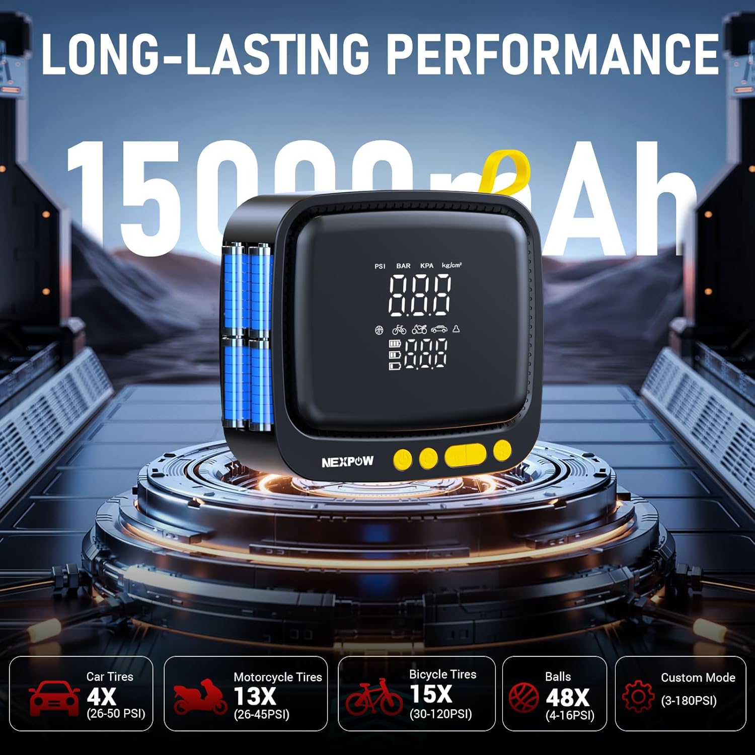 NEXPOW Tire Inflator Portable Air Compressor, 180 PSI Cordless Air Pump for Car Tires with Digital Pressure Gauge & Auto Shut-Off, Air Compressor Portable for Car, Motorcycle, Bicycle, Ball, Yellow