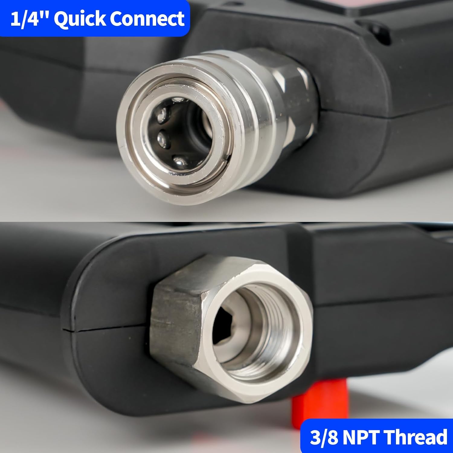 - MORE COMPATIBILITY: The pressure washer gun Kit includes a high pressure washer with a 1/4“ quick disconnect socket, a 3/8” quick connector, an M22-14mm fitting, and an M22-15mm fitting.The M22-14mm inlet with 1/4” quick connect female outlet is designed to fit most high pressure washers. Plug-and-play functionality eliminates the need to purchase additional adapters or gaskets; just connect and start cleaning in no time.