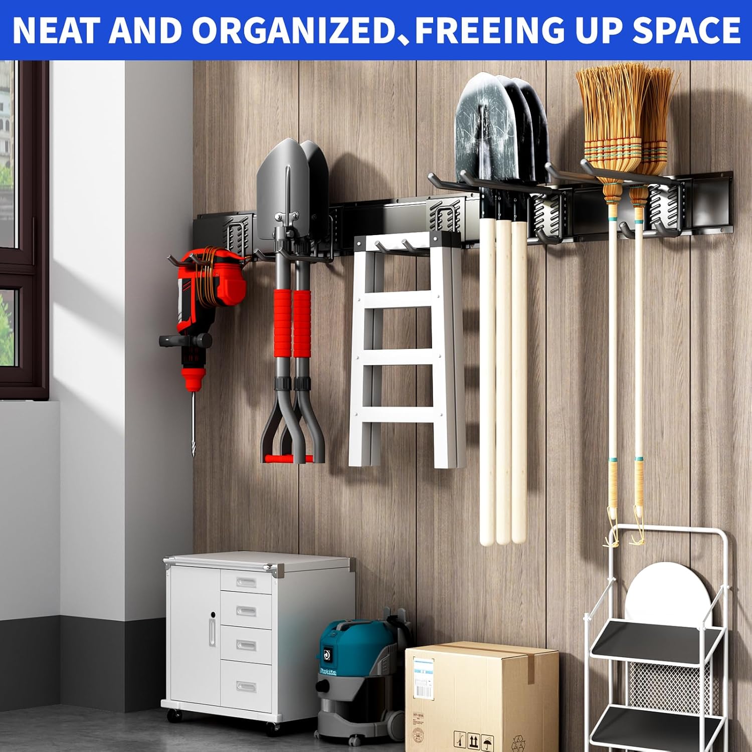 - OPTIMIZE YOUR SPACE: garden tool organizer compact design helps you maximize space. Hang tools and equipment to free up valuable floor space in garages, sheds, gardens, and more