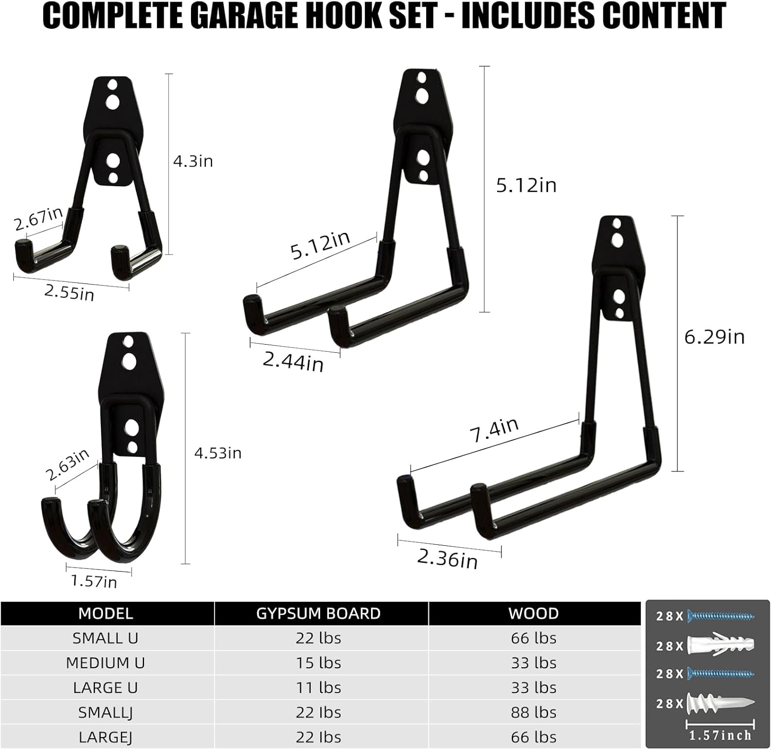 - HIGH-QUALITY MATERIALS:garage storage hooks Made of metal with a surface coating, these heavy duty wall hook are sturdy, durable, rust-resistant, and resistant to deformation. With a load capacity of up to 55 pounds, they ensure the storage of tools and equipment