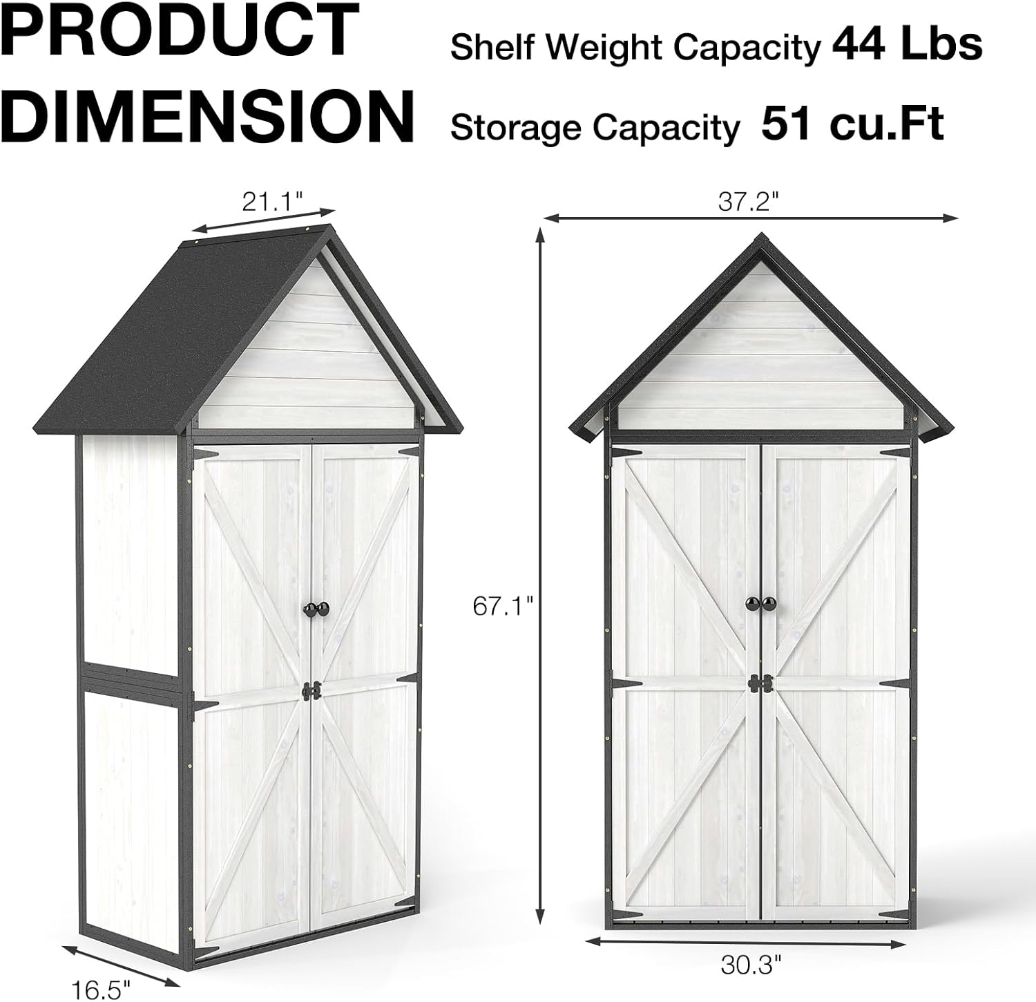 - Weatherproof & Elevated Design – The garden storage tool shed features a sloped roof to prevents rainwater pooling and raised fir floor blocks moisture, keeping tools dry in any season.