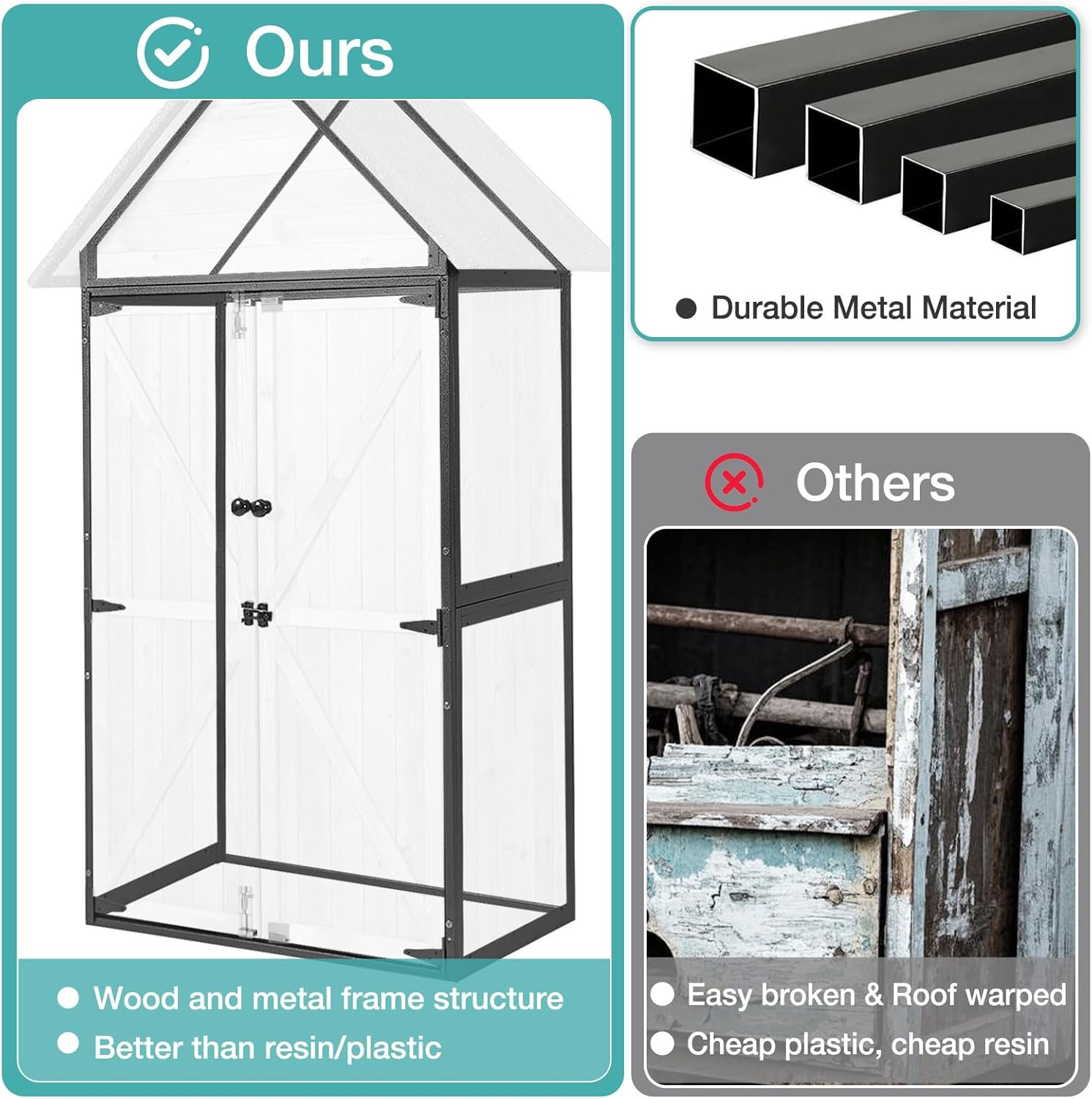- Heavy-Duty Hybrid Construction – Sturdy metal frame paired with rot-resistant fir wood ensures unmatched durability for long-term outdoor storage, ideal for patios, gardens, or garages.
