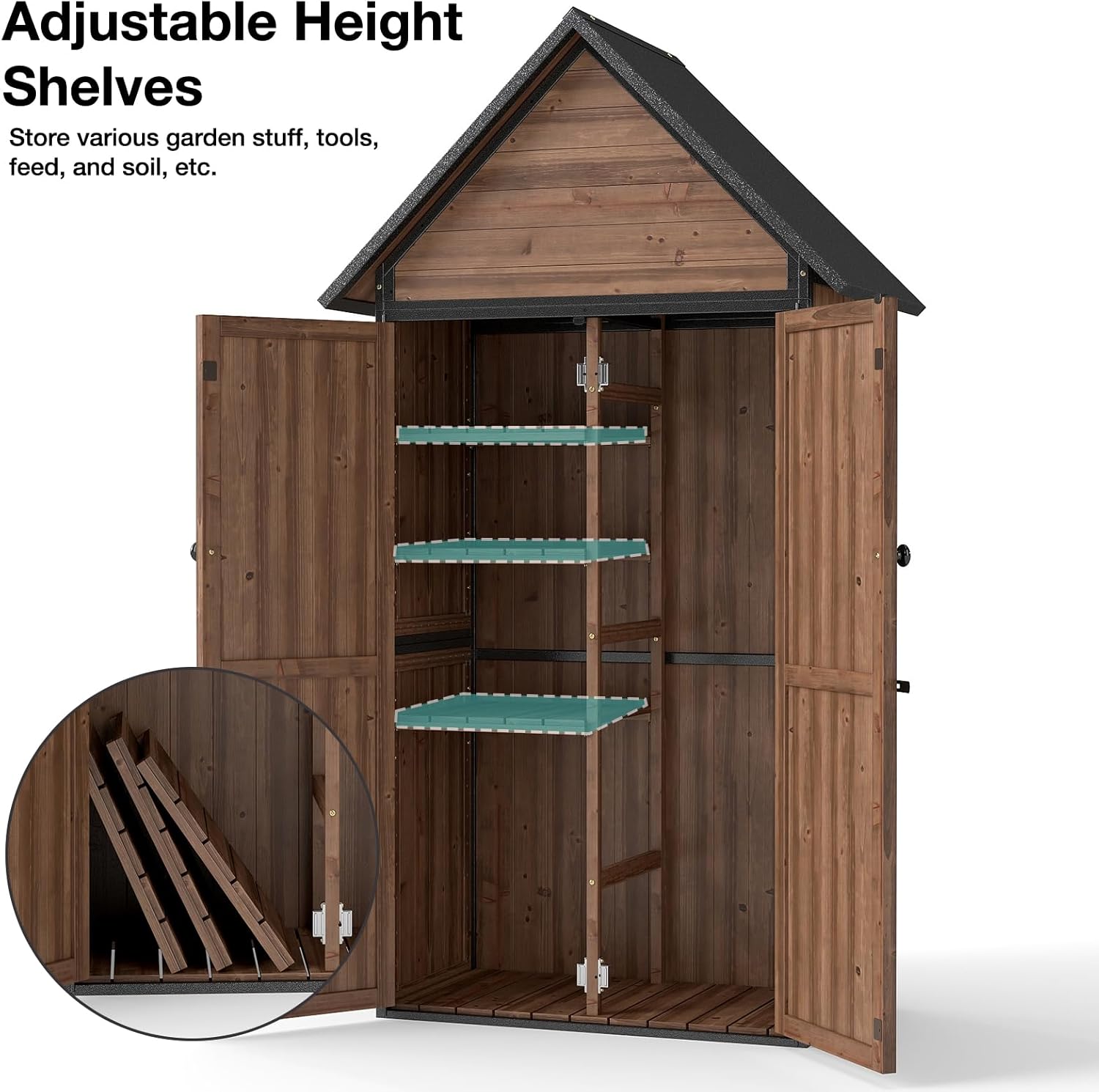 - Weatherproof & Elevated Design – The garden storage tool shed features a sloped roof to prevents rainwater pooling and raised fir floor blocks moisture, keeping tools dry in any season.