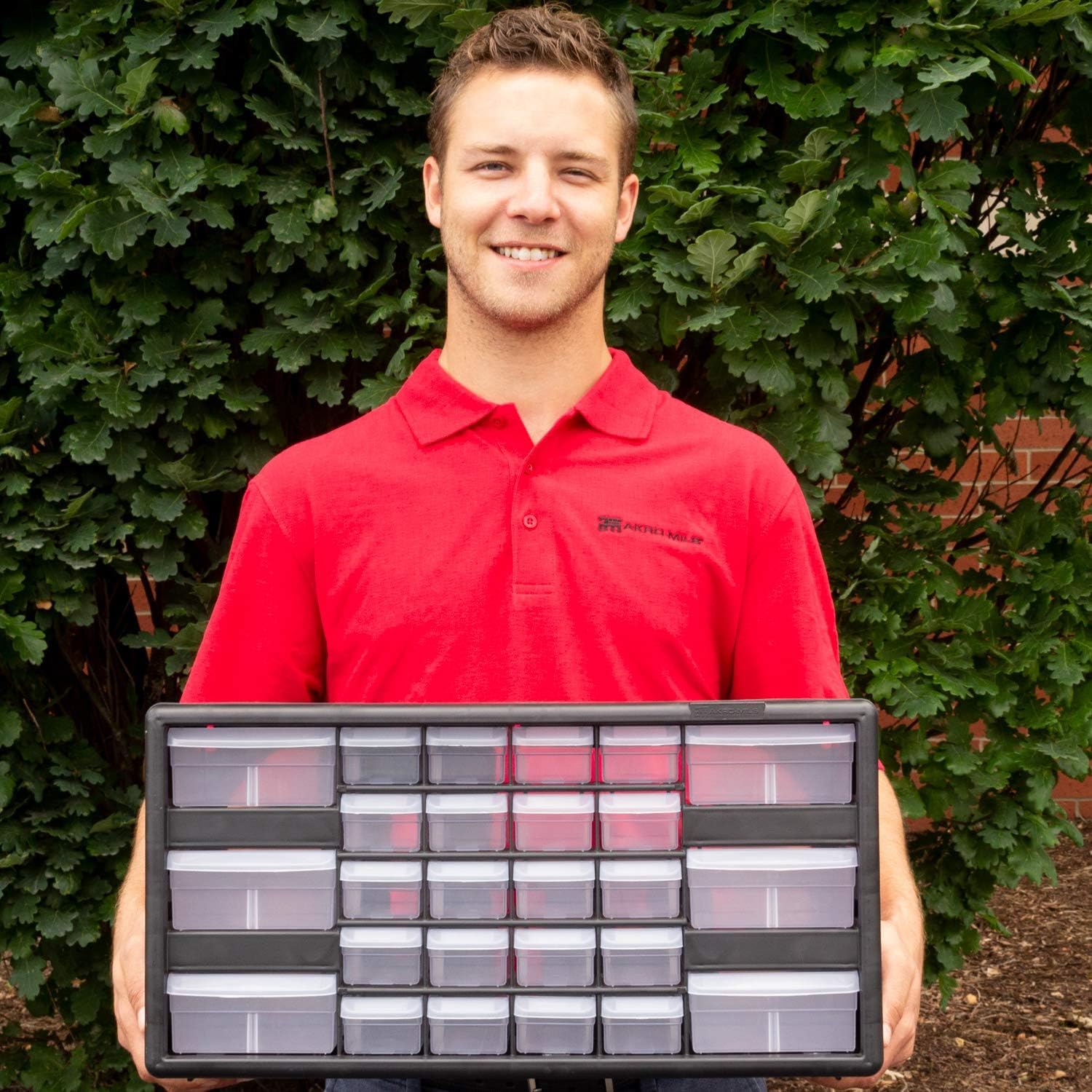 - GARAGE ORGANIZATION: The small parts organizer is great for garages and workshops for both homeowners and businesses; The plastic storage drawers can be used as tool box, screw organizer or for battery storage; Keep nails and other small parts accessible