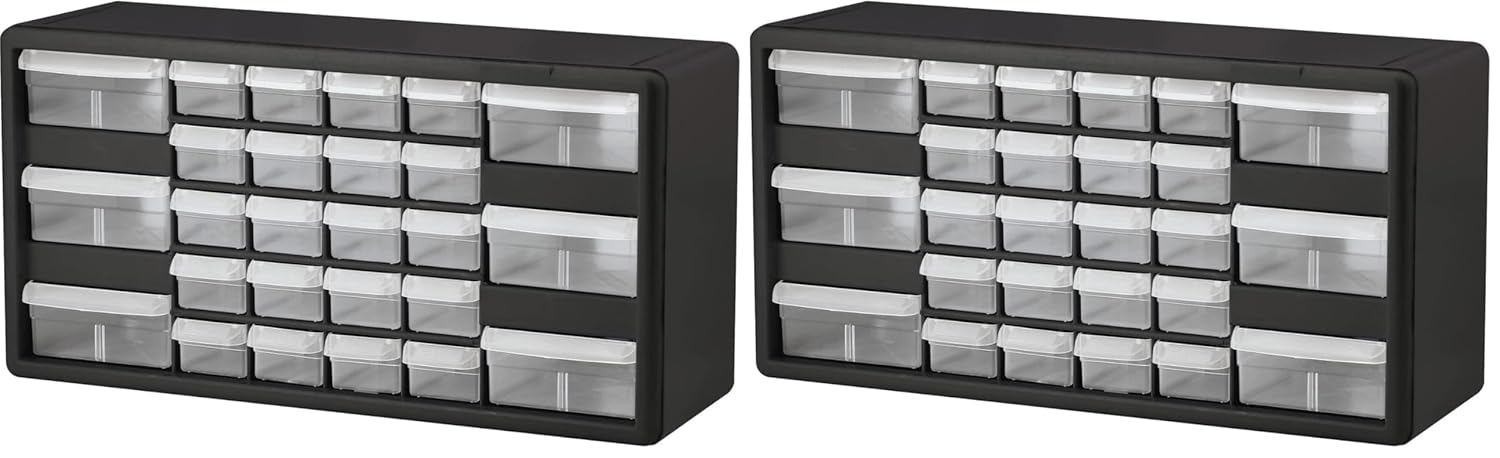 Akro-Mils 26-Drawer Plastic Drawer Storage Cabinet for Garage Organization, Bead Organizer, Building Bricks Storage, Teacher Toolbox, Makeup Organizer, 20-Inch W x 6-Inch D x 10-Inch H, 10126 Black