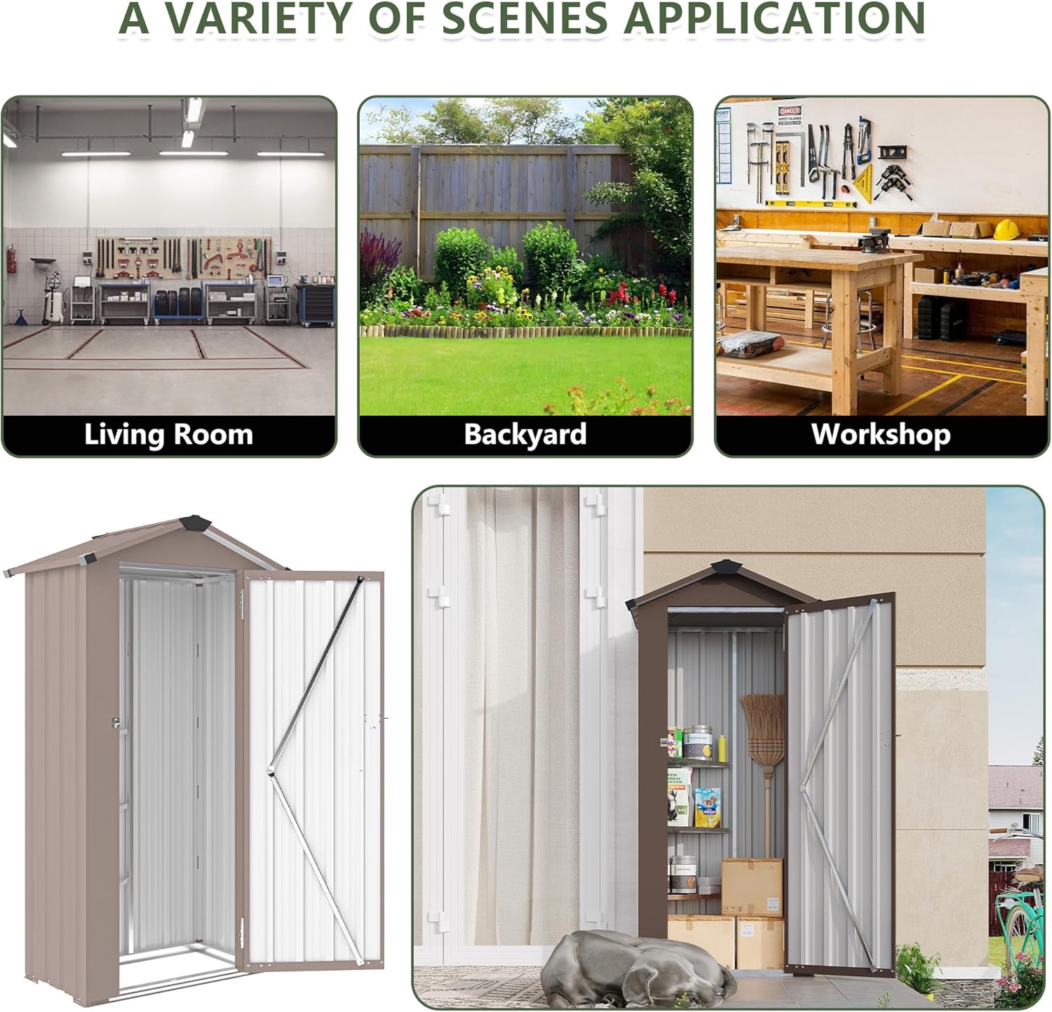 - 🏡𝐀𝐥𝐥-𝐰𝐞𝐚𝐭𝐡𝐞𝐫 𝐒𝐭𝐨𝐫𝐚𝐠𝐞 𝐒𝐡𝐞𝐝: This small outdoor storage shed 2.5x1.4 is crafted from high-quality galvanized steel, offering excellent rust resistance and stability. Even when exposed to prolonged sun and rain, it maintains a like-new appearance and outlasts ordinary outdoor storage cabinet. Its unique waterproof design lets you safely store office supplies, cleaning tools, and outdoor equipment without worry of moisture or damage
