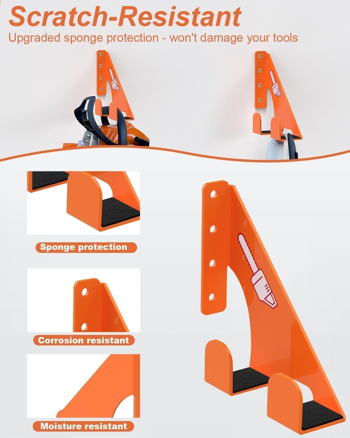 - 💪【Universal Fit & Easy Installation】Simple 3-step setup: mount bracket, secure screws, hang saw. Compatible with Stihl, Husqvarna, Echo, and most chainsaws.