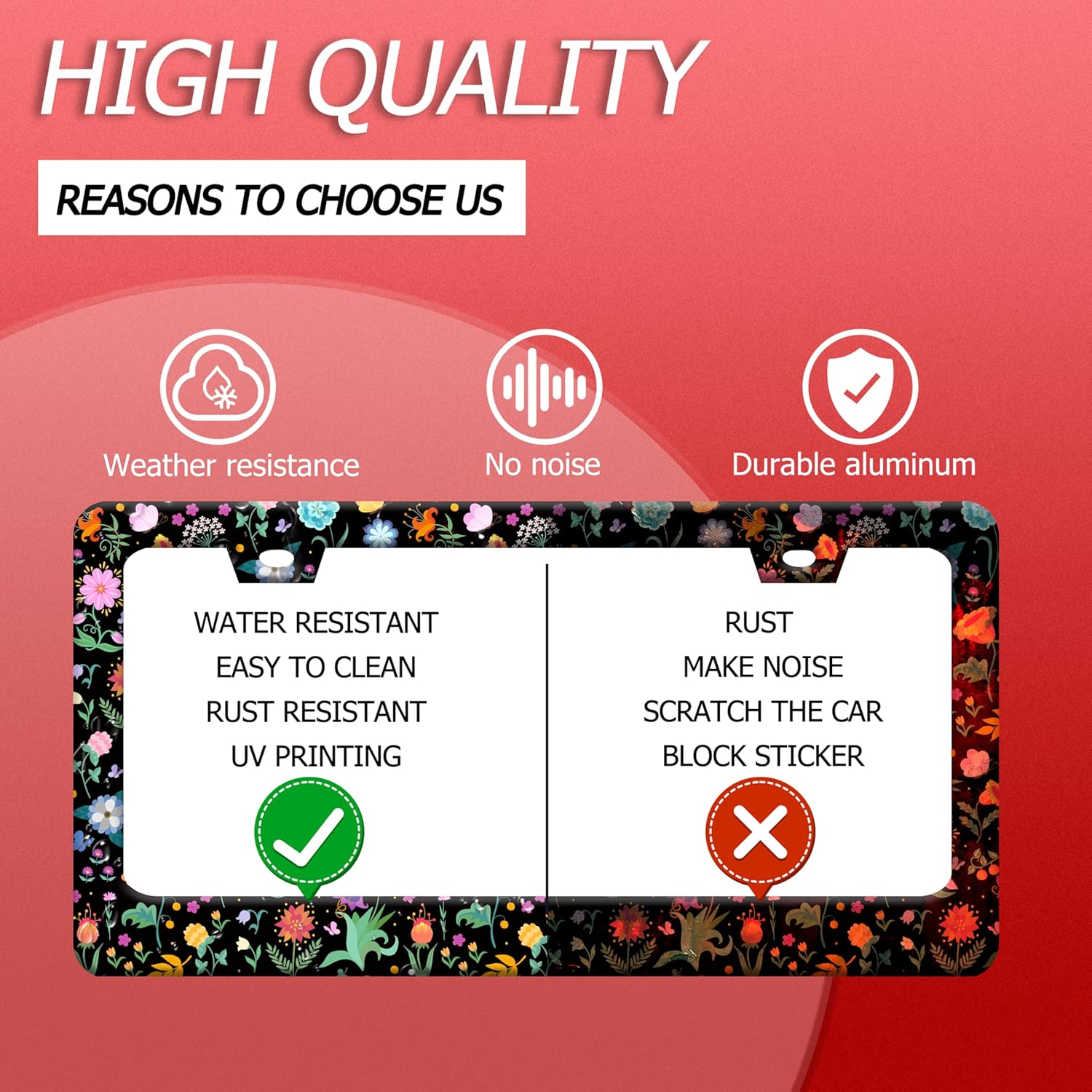 Colorful Flowers License Plate Frame Folk Art Floral License Plate Holder Funny Stainless Steel Accessories Cars Decor with 2 Holes and Screws Fits Standard Us Ca Vehicles 12.2 X 6 Inch