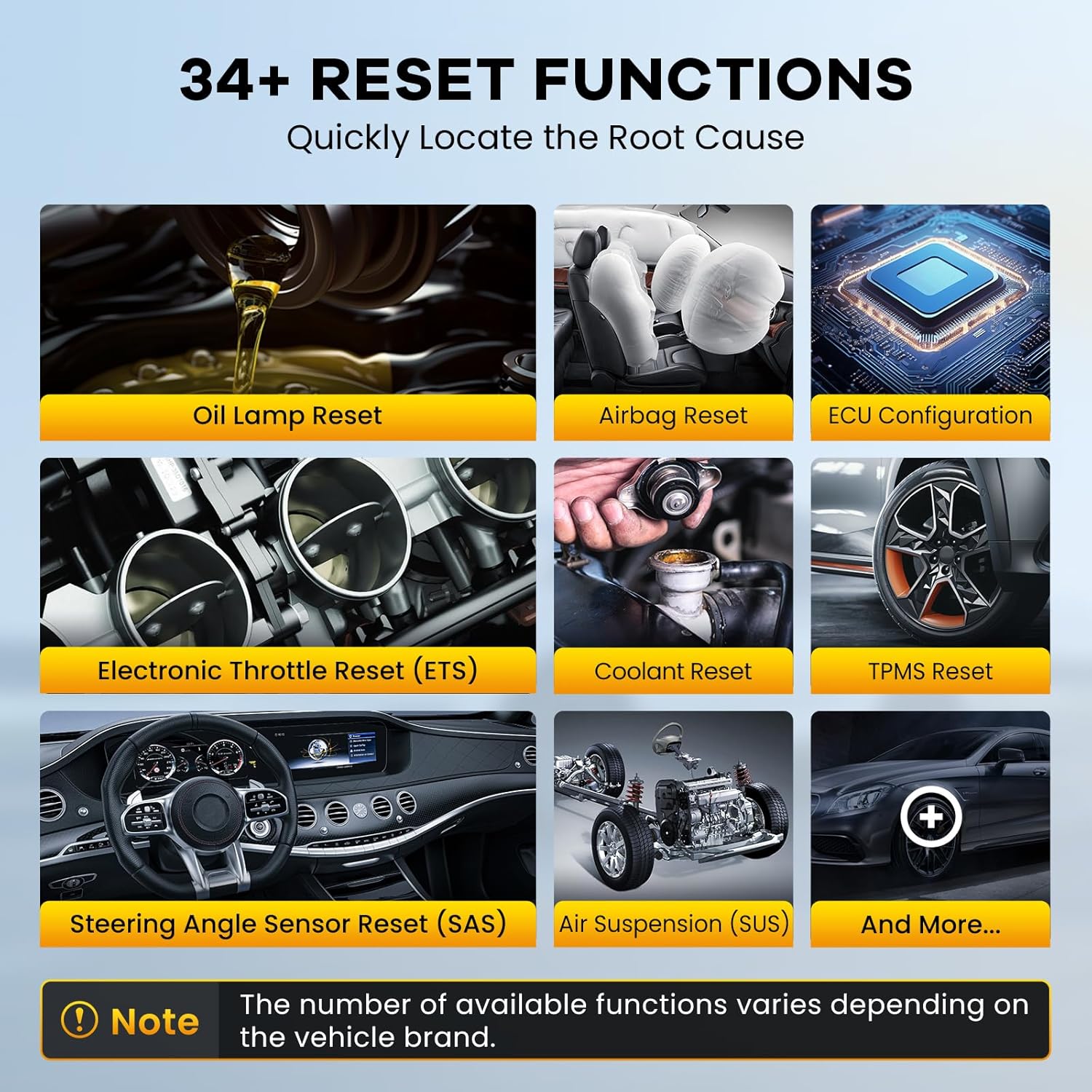 - 【34+ Popular Reset Functions】THINKCAR ThinkScan car diagnostic tool has 34 service functions (free for life). These include oil lamp reset, EPB, BMS, SAS, ABS, injector coding, transmission adaptation, clutch, ECU reset, and turbo reset. These reset functions can quickly help you perform various maintenance tasks on vehicle systems. New reset functions are constantly being added to the ThinkScan 689 OBD2 scanner. Please check compatibility before purchasing.