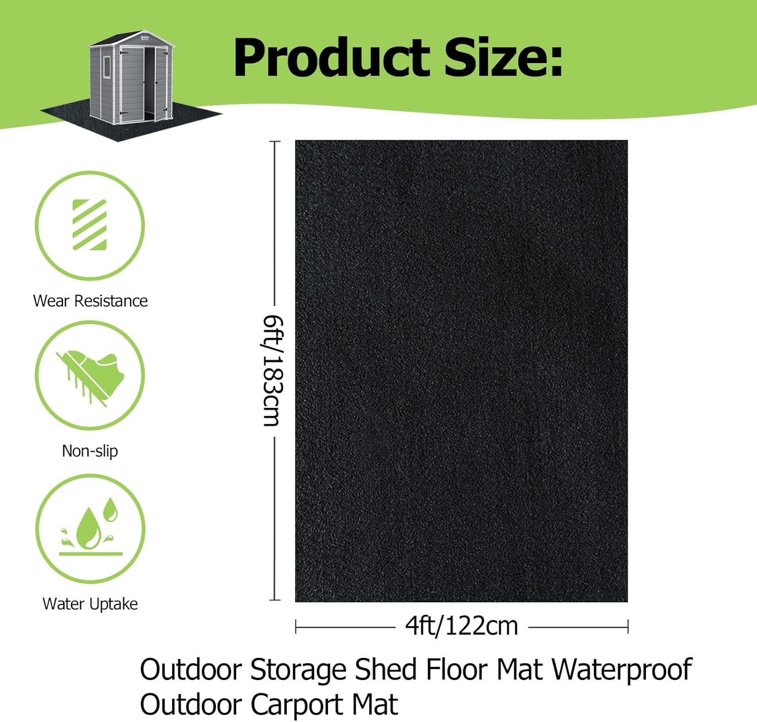 - PACKAGE INCLUDES:You will get 6 x 4 feet outdoor storage shed mat (storage shed not included), which not only protects the outdoor storage shed from the erosion, wear and tear of the wet ground, but also helps to keep your storage shed clean and tidy, effectively saving your cleaning time.