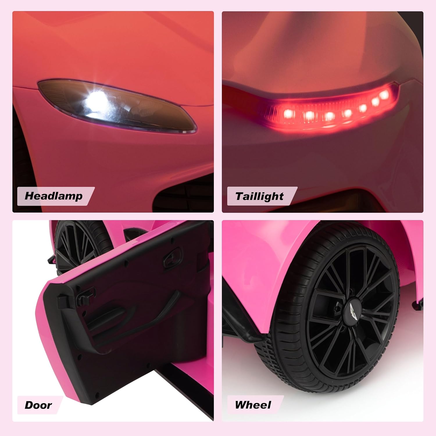 Ride on Car with Remote Control, 12V Licensed Aston Martin Electric Car for Toddlers with Soft Start, Music, USB, Bright Lights, Battery Powered Car for Kids 36-95 Months (Pink)