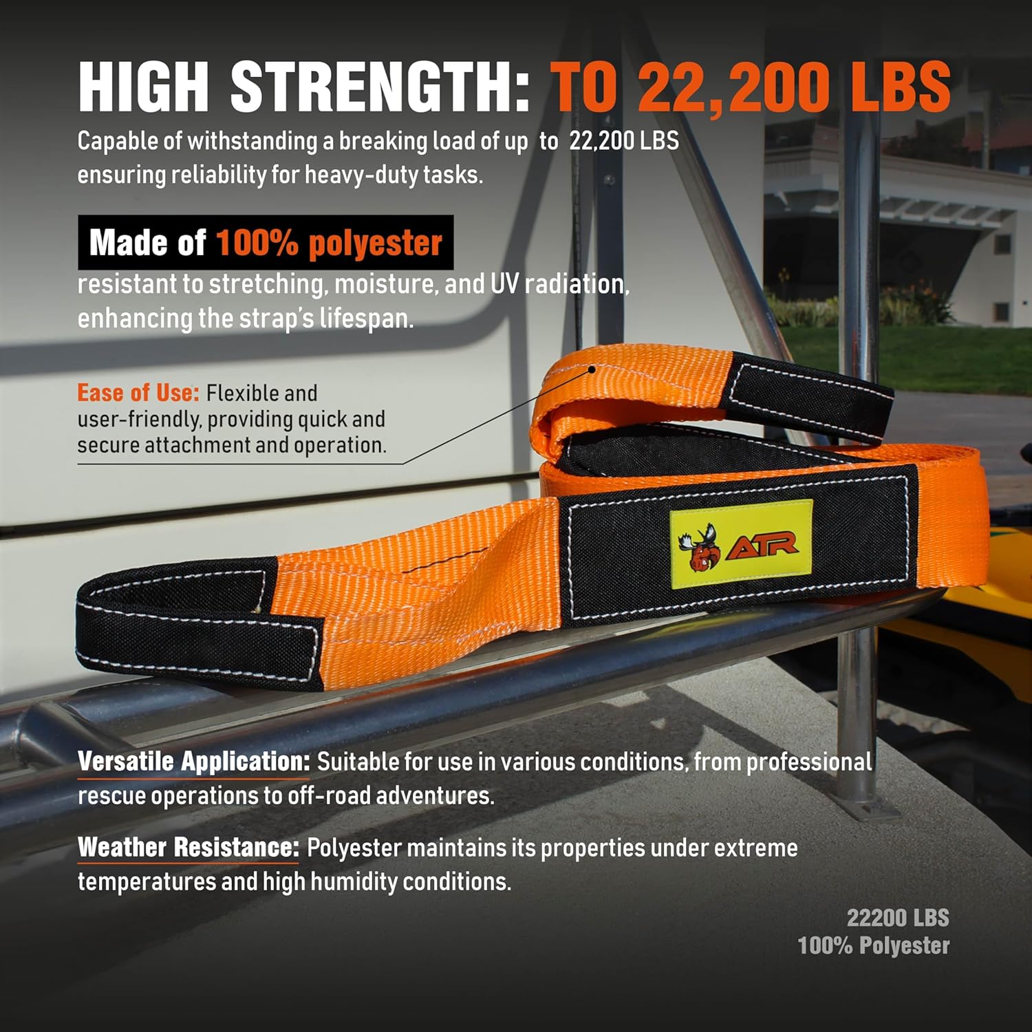 ATR Recovery Tow Strap 3" x 20ft – 22,200 lbs Breaking Strength, Heavy Duty Snatch Strap for Truck, SUV, Off-Road Pulling, Tow Rope with Storage Bag