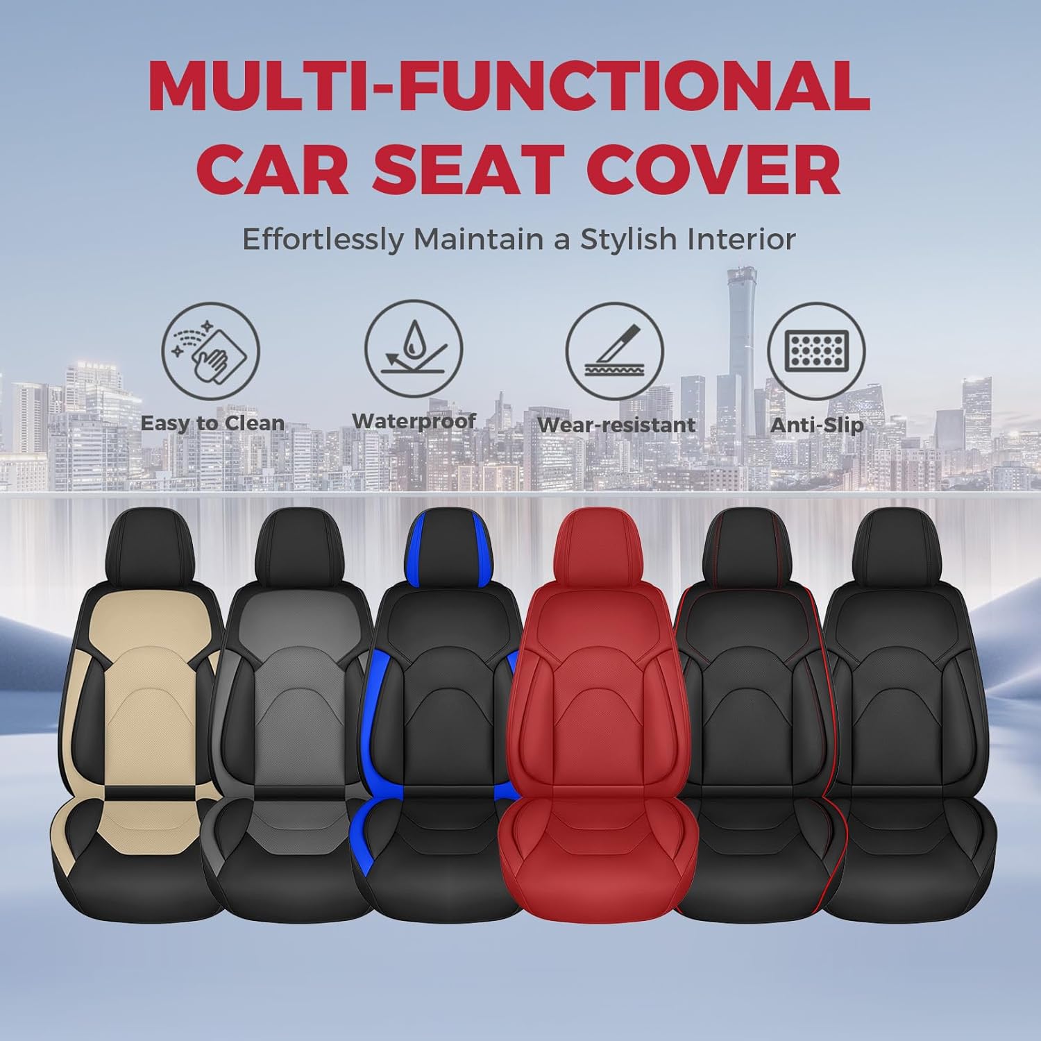 - [Premium Faux Leather] Made of high-grade perforated faux leather, these covers are breathable waterproof, easy to clean, and a luxurious. Whether you frequently engage in outdoor activities, travel with kids, or have pets, maintaining the elegance and sophistication of your car interior is effortless