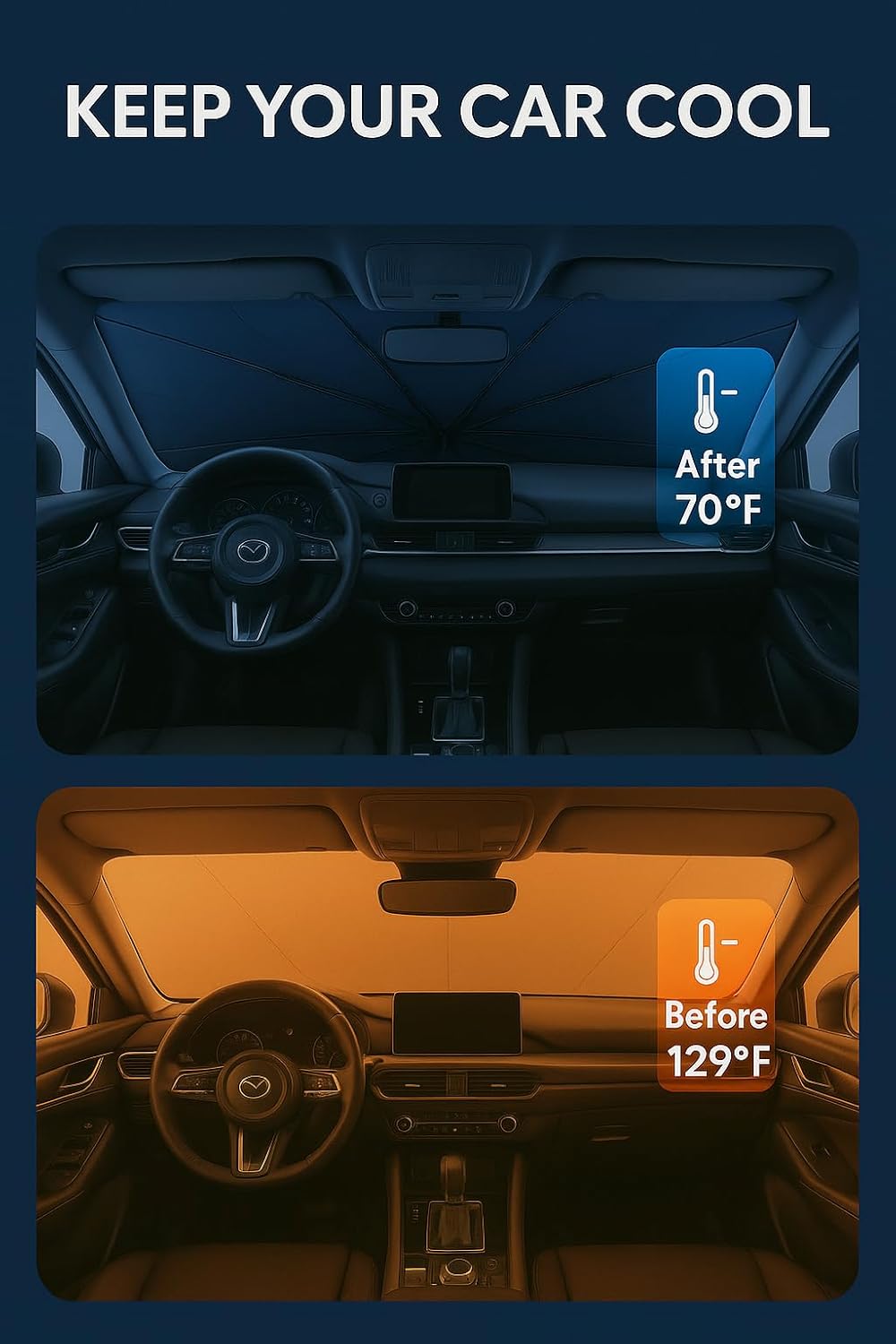 - Certified Sustainable. Customized Windshield Sunshade: Specially designed for the 2017-2025 Mazda CX5 with precise mirror cutouts, providing 100% shading, carbon fiber handle, ensuring lightweight and durability while also having a fashionable feel. Our CX5 windshield sunshade can protect the interior of your car from various light damage and prevent dashboard and seat degradation.