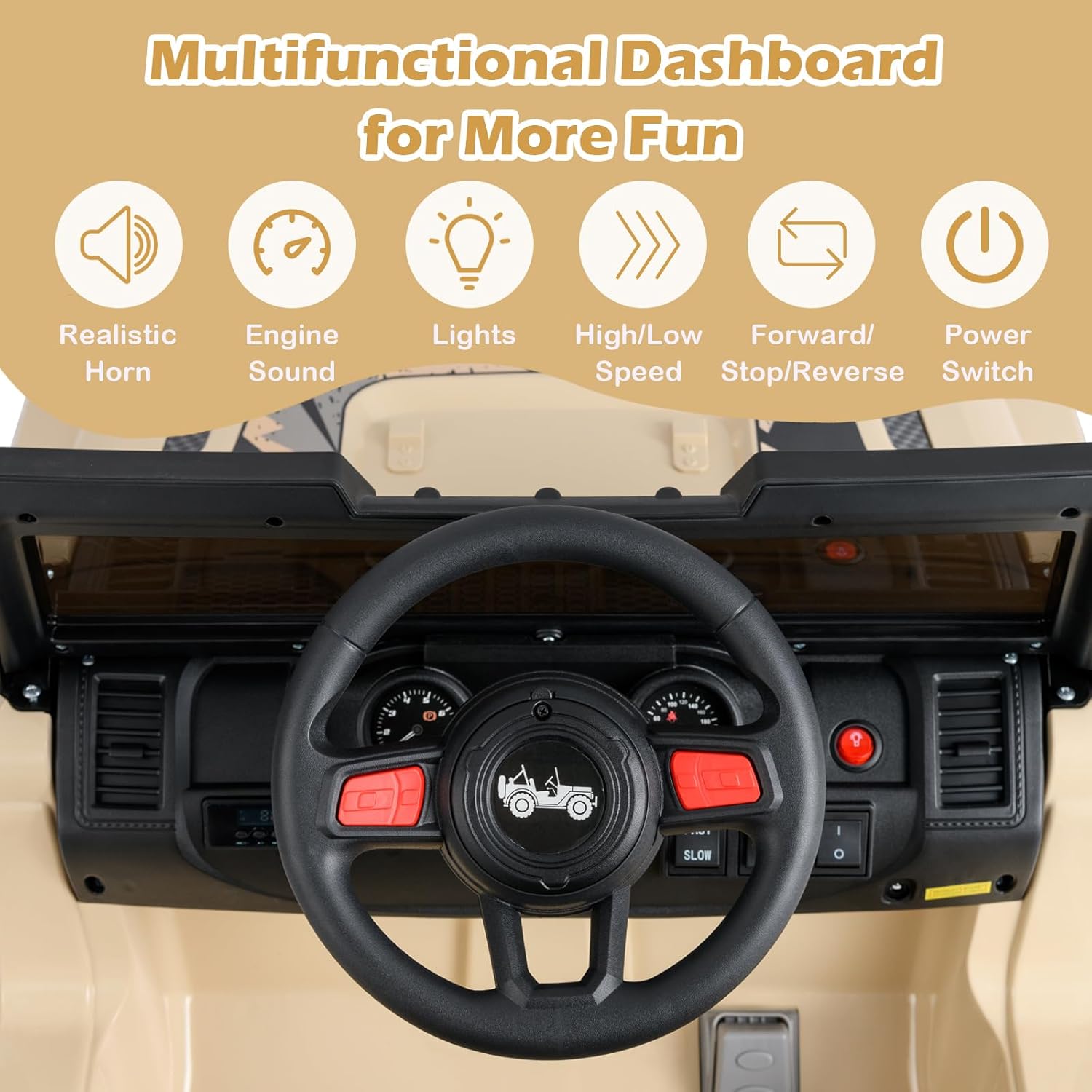 INFANS Kids Ride on Car Truck with 2.4G Remote Control, 12V Battery Powered Electric Cars for Kids w/3 Speeds, Battery Display, LED Lights, Safety Belt, Music & Horn, Bluetooth/FM/USB (Khaki)