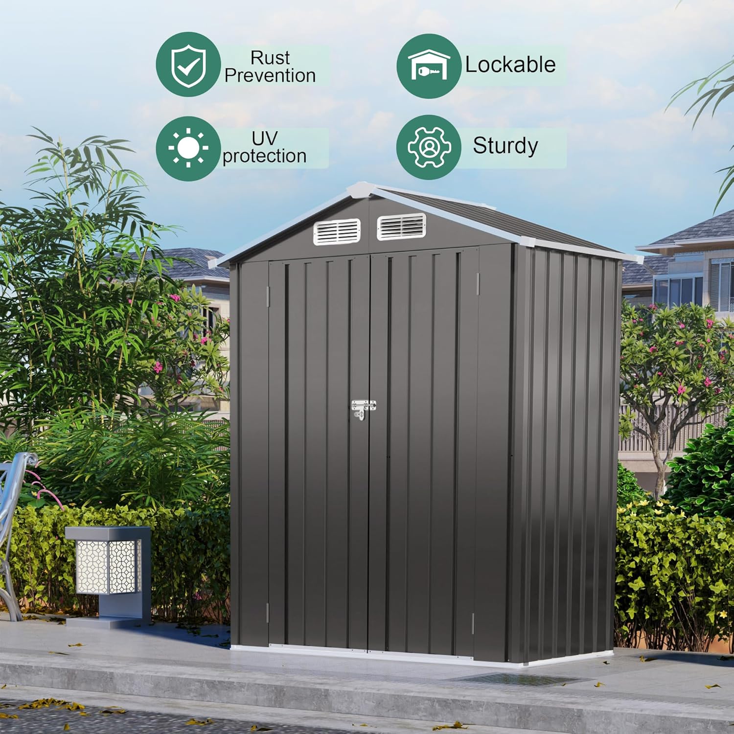 5x3x6FT Outdoor Storage Shed, Galvanized Steel Garden Shed with Lockable Door & Window, Waterproof Metal Tool Storage for Garden, Backyard, Patio, Lawn(Peak Roof)