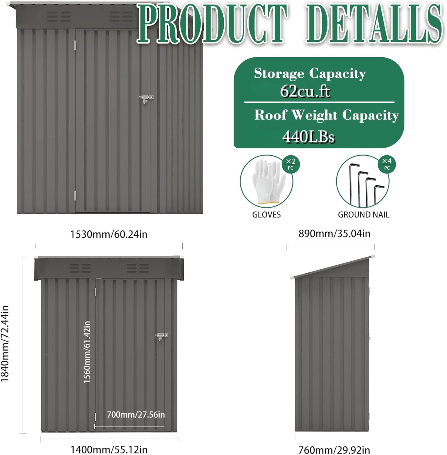 - LARGE STORAGE SHED: Measuring 60''L x 35''W x 71''H. Vigo huseeo shed offers a generous amount of storage room for various items such as gardening tools, outdoor sports gear, and seasonal items. Its large capacity keeps your yard tidy and meets diverse needs.