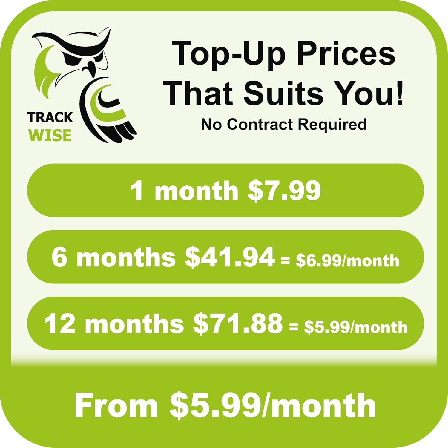 - Flexible No-Contract Subscription Pay-as-you-go plans from $5.99/month, with no hidden fees, no return charges and cancel anytime. Choose 1 month ($7.99), 6 months ($6.99/mo) or 12 months ($5.99/mo).